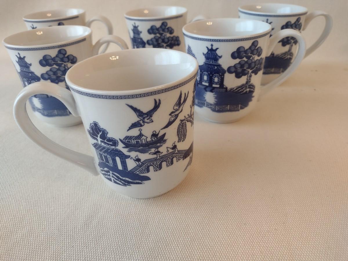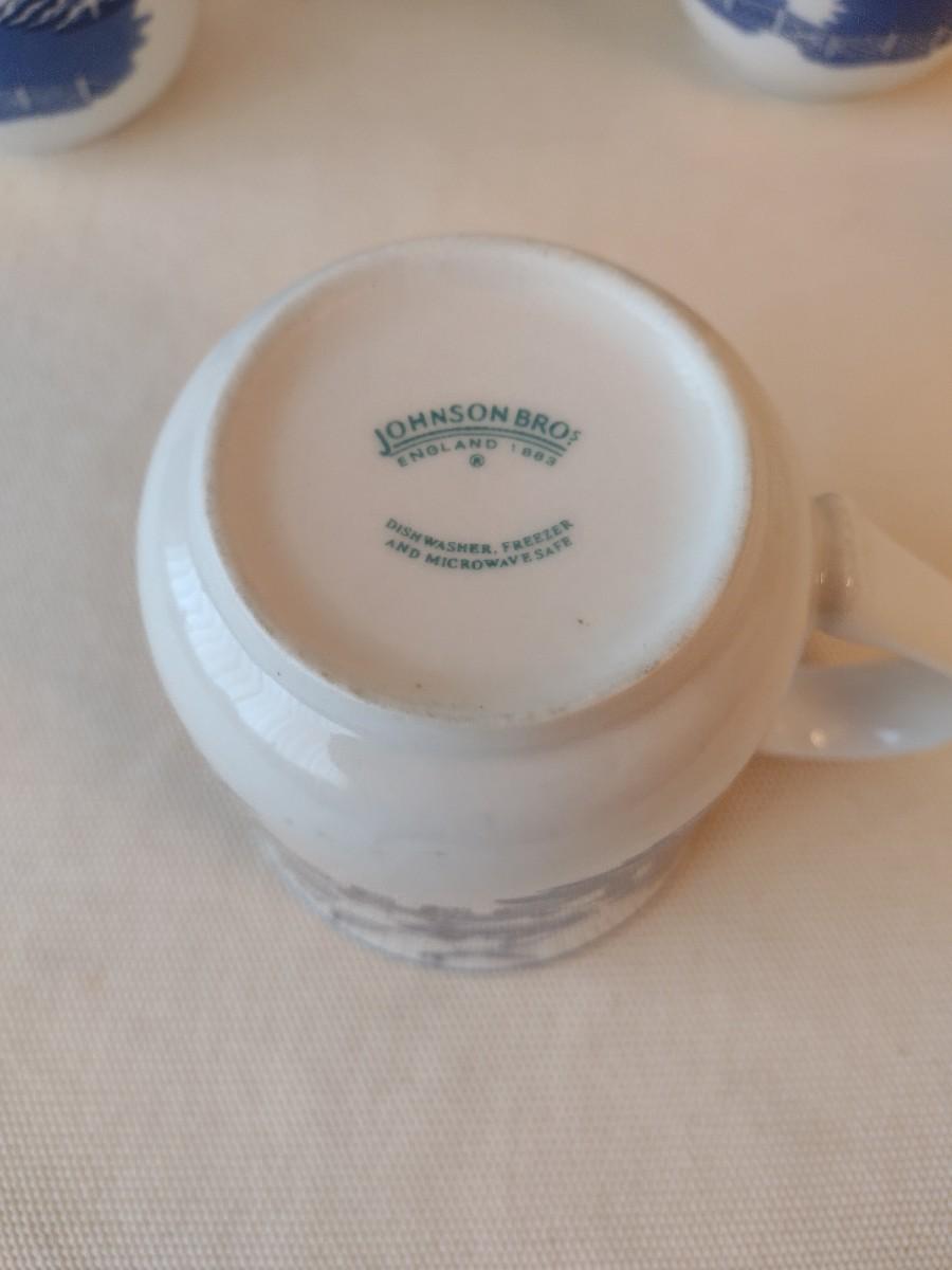 Set of Six Johnson Brothers Blue and White Coffee Cups