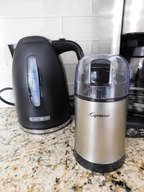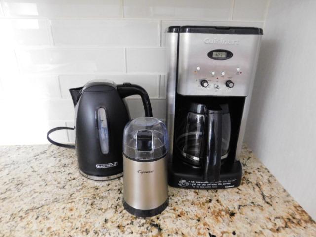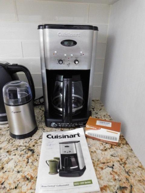 Coffee Appliance Assortment including Cuisinart Brewer, Bean Grinder, and Hot Water Pot