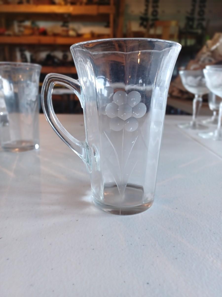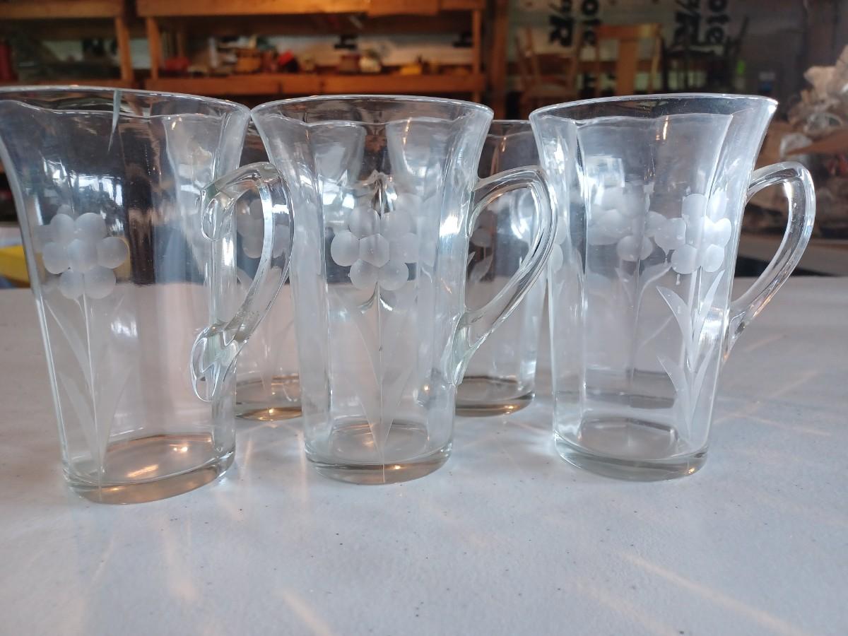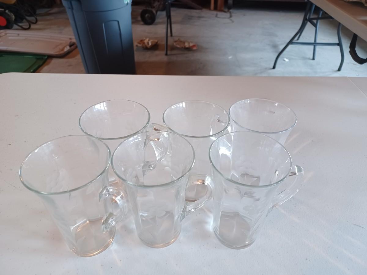 6 Vintage Irish Coffee Mug. Clear. Beautiful Etched flowers