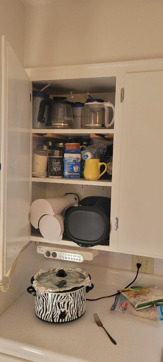 Multiple coffee related items. GPX under counter radio. Radio turns on unsure of condition.