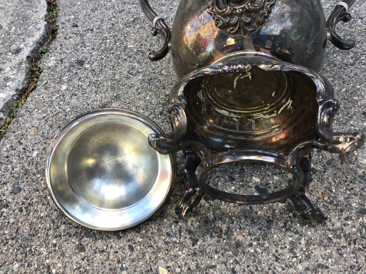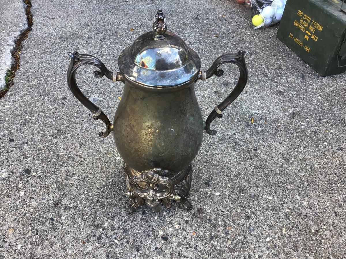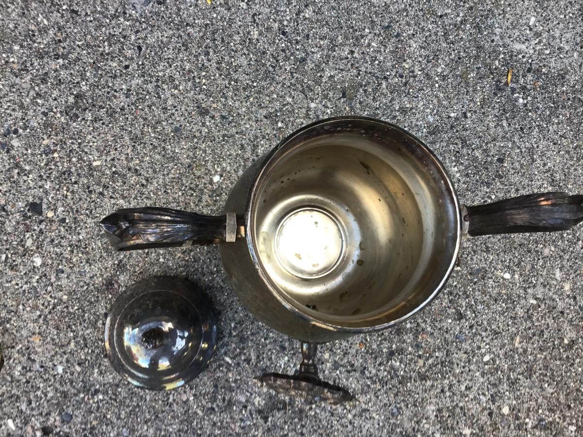 Silver plated coffee server (not tested). Needs polishing but very ornate, no markings found.