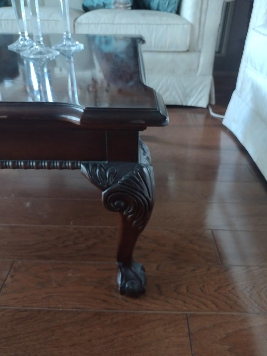 Beautiful Thomasville ball in claw Mahogany coffee table. excellent condition. made in the USA