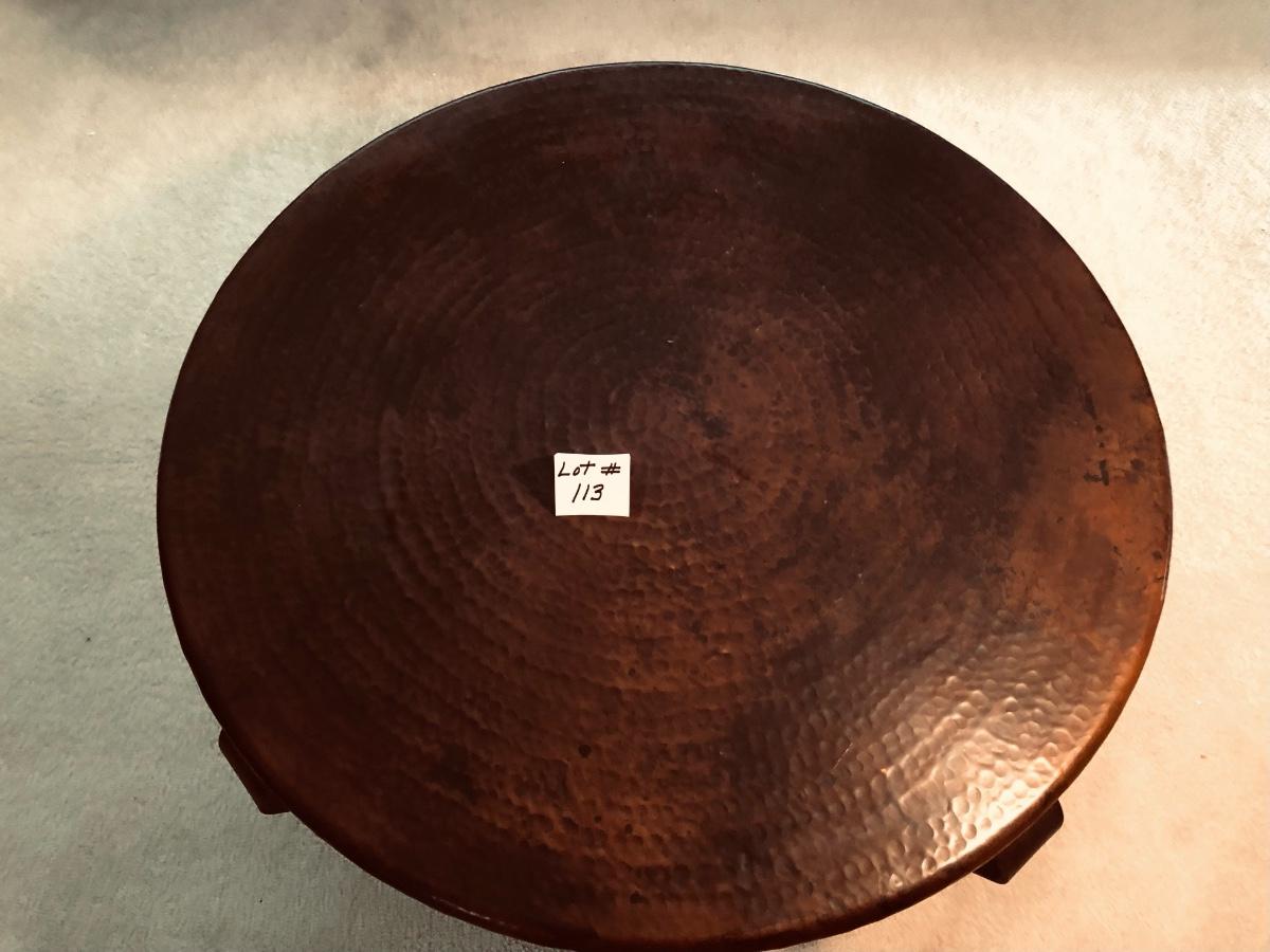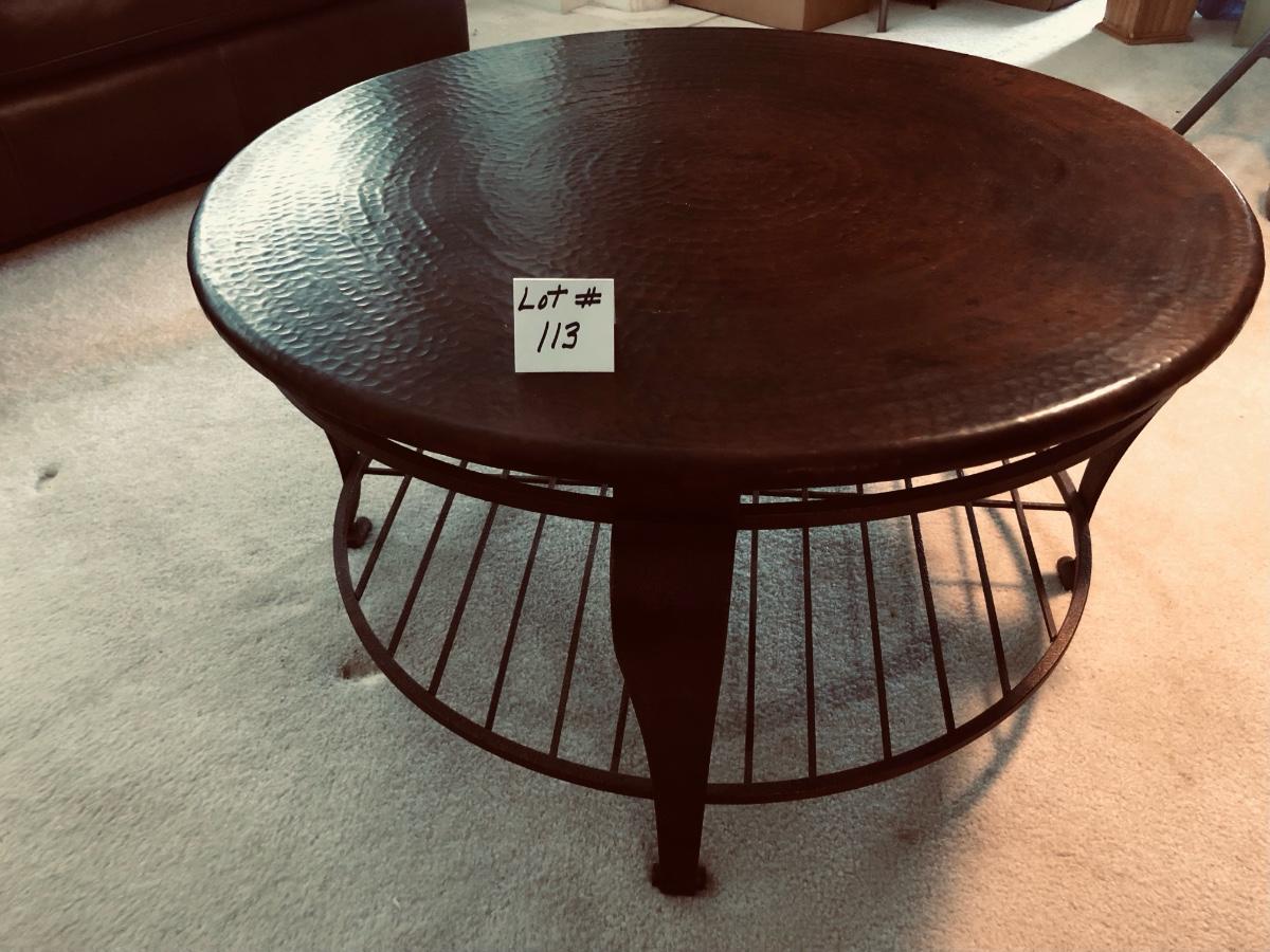 Round hammered metal top coffee table
