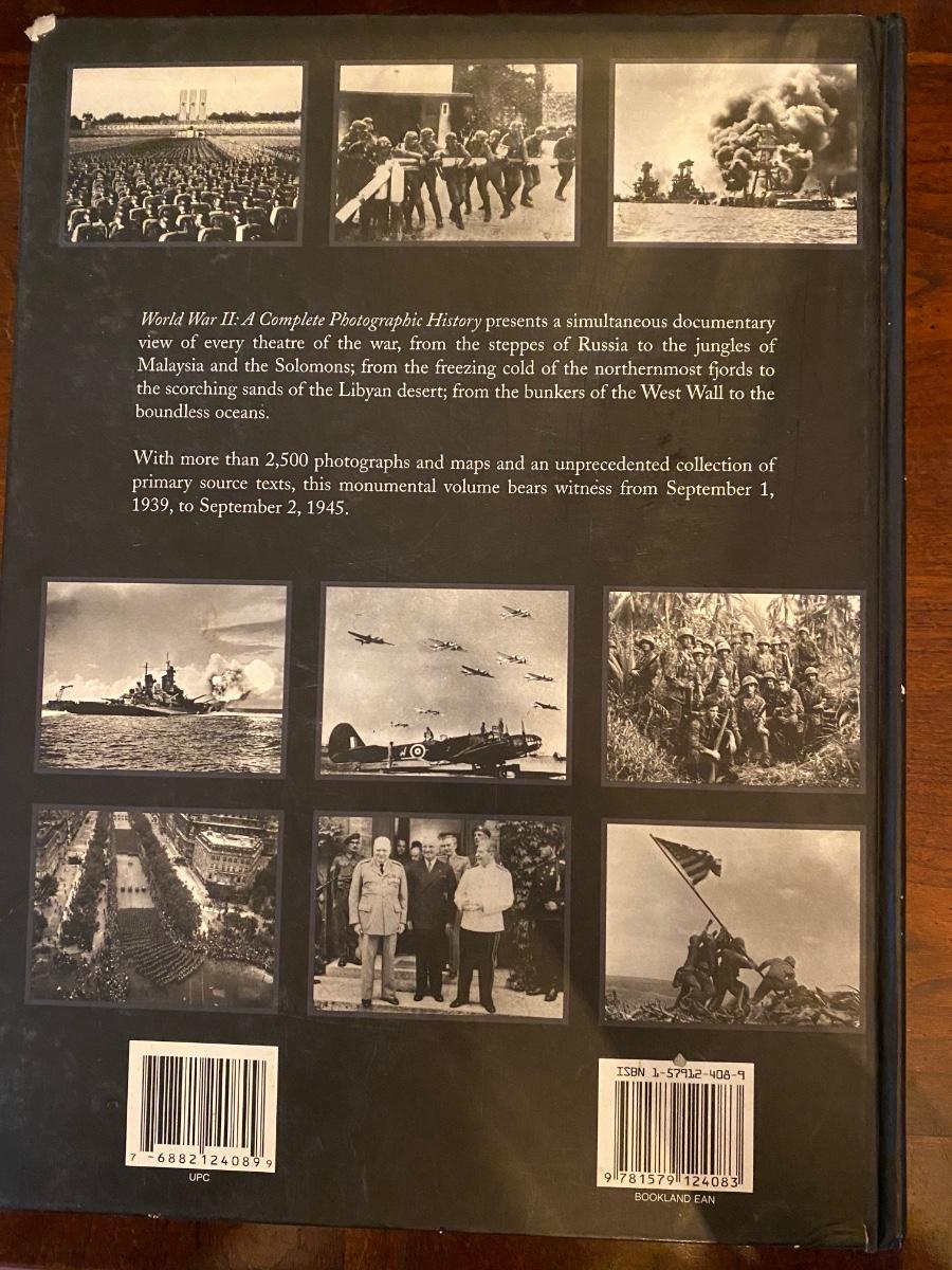 “World War II, A Complete Photographic History”, edited by Hal Buell. 740 pages, cr 2002. Some wear on edges, otherwise in good condition