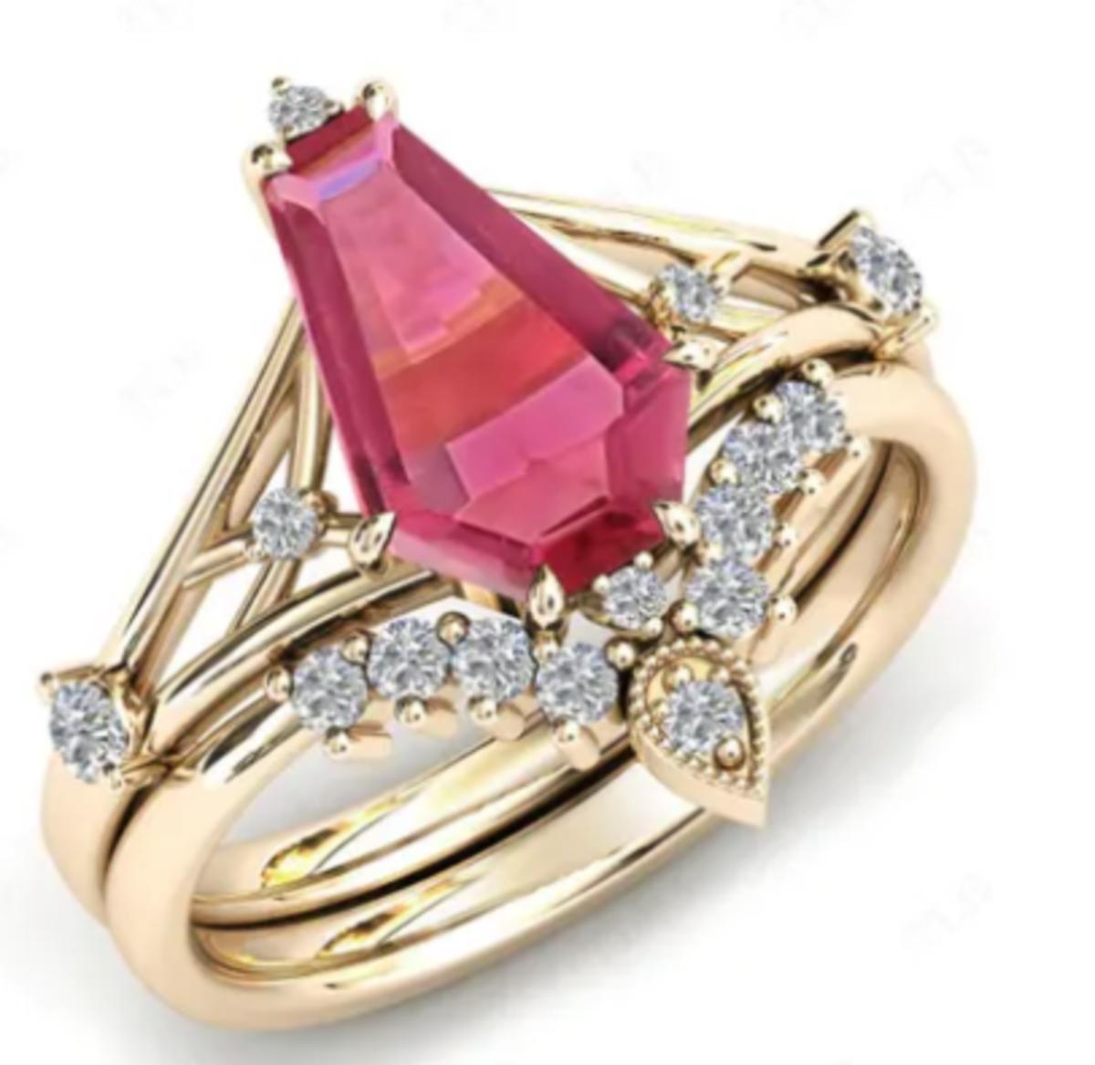 Coffin Cut Pink Tourmaline & Moissanite Bridal Set