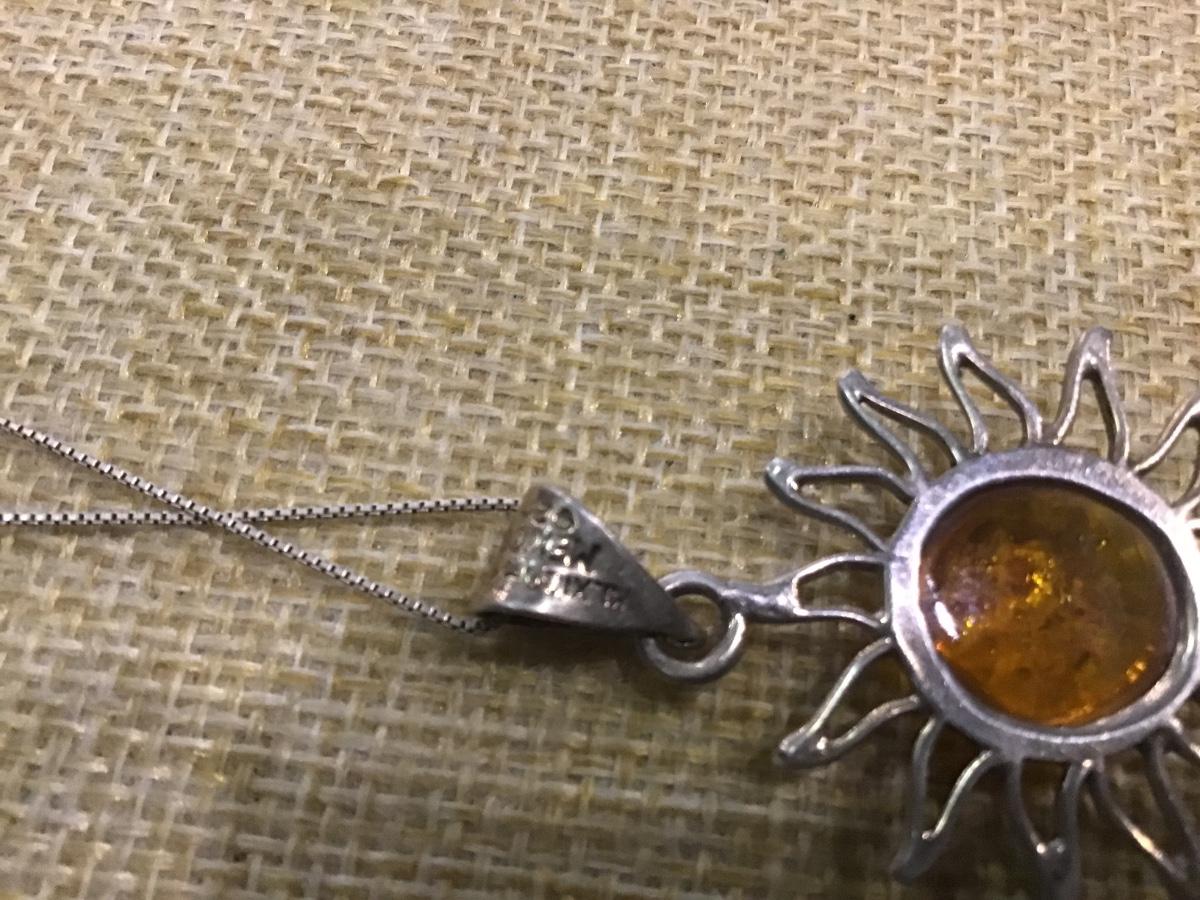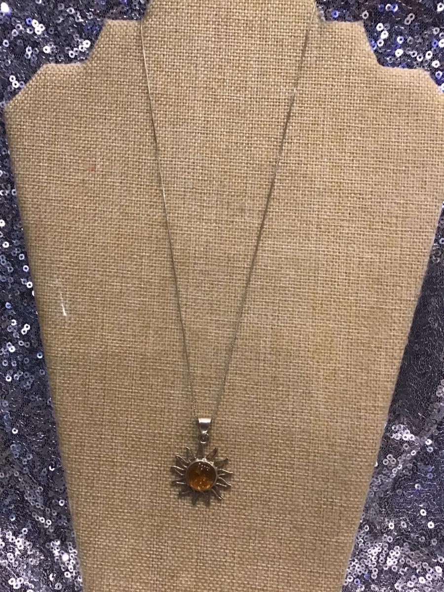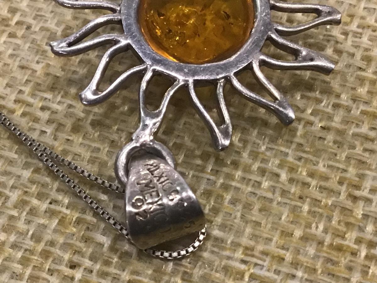 Cognac / Brown AMBER Sun Pendant - 925 STERLING SILVER Mexico and 925 Chain