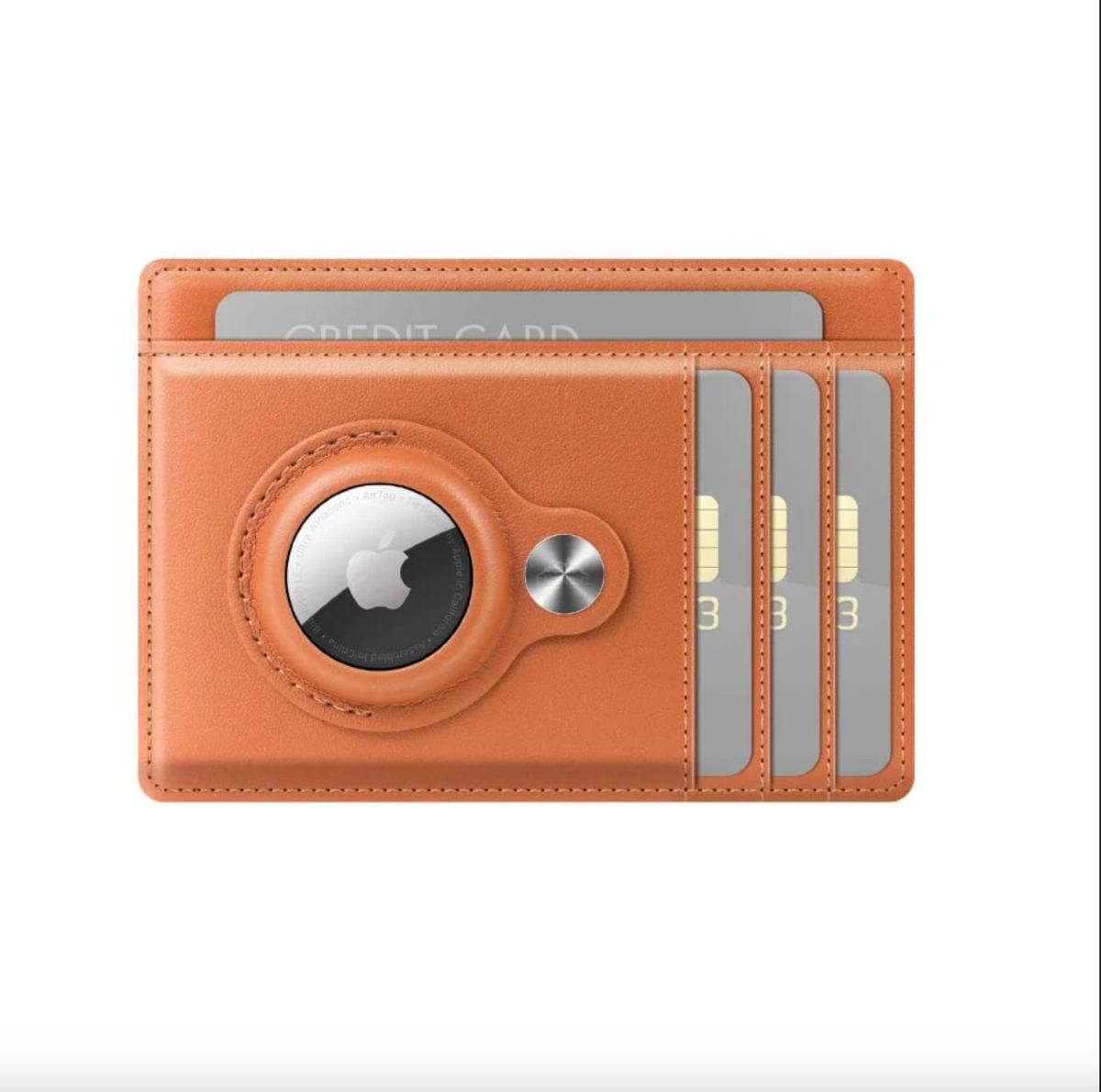 Cognac Brown Premium Leather Airtag Wallet w/RFID Blocking & Slots for ID, 3-5 Credit Cards & Inner Pocket for Cash