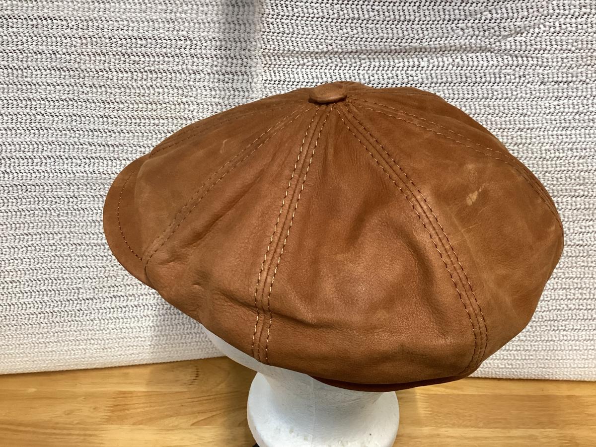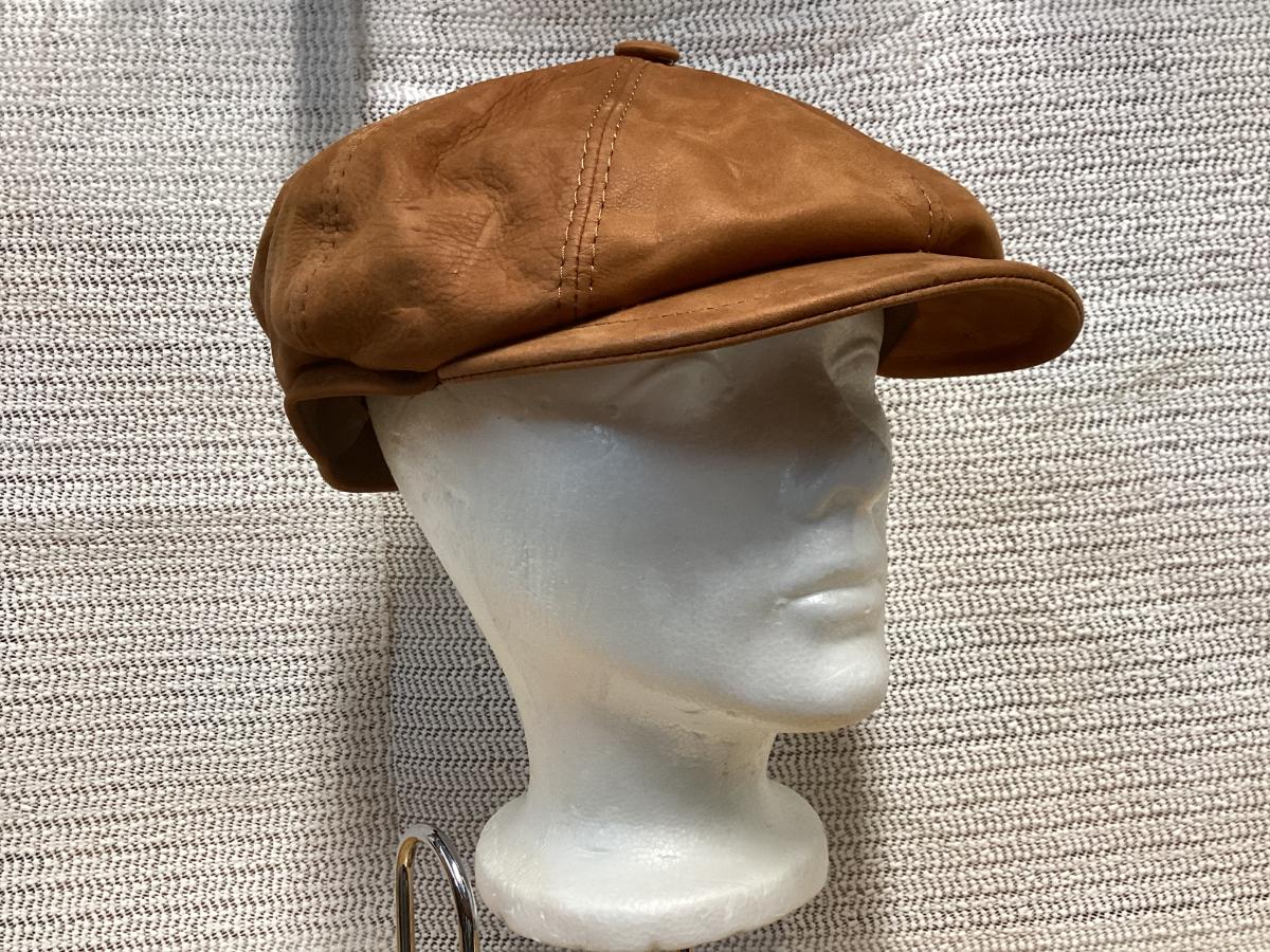 Cognac or tan newsboy cap size XXL- Genuine Leather made in Italy