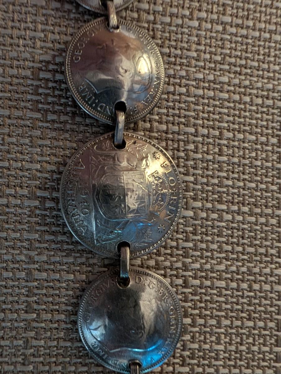 Pop out coin bracelet 1943 sixpence 1942 sixpence 1941 sixpence florin 1940. What a fun bracelet!