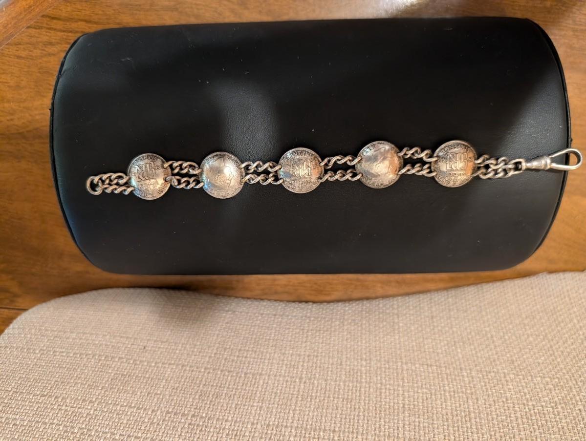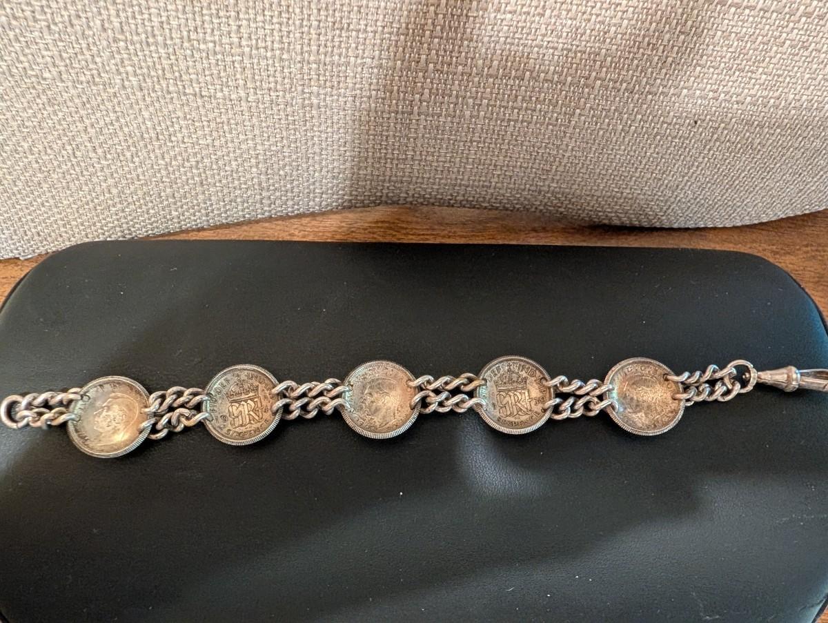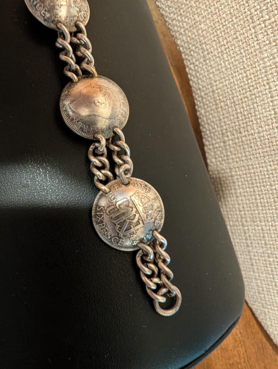 1940s pop out coin bracelet sixpence Australia shilling. It's a very neat bracelet