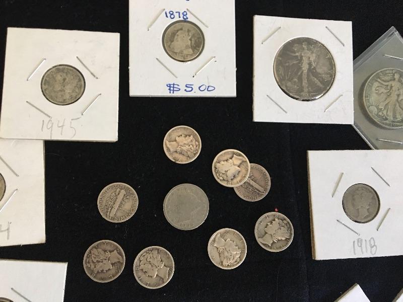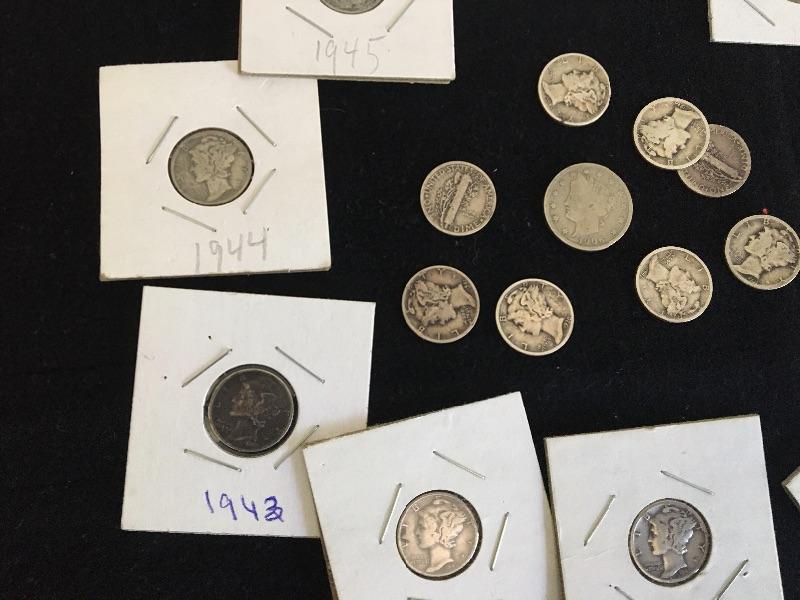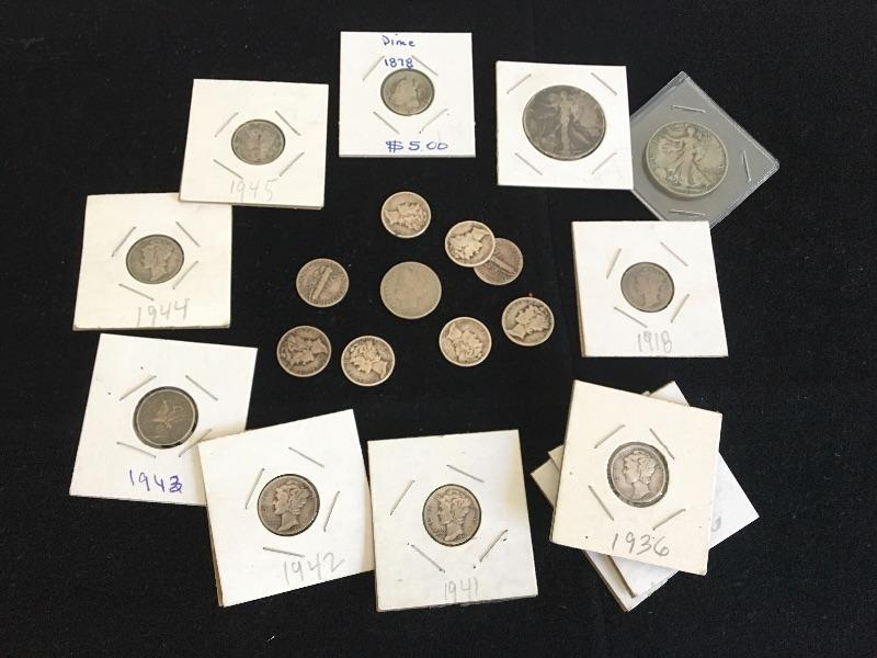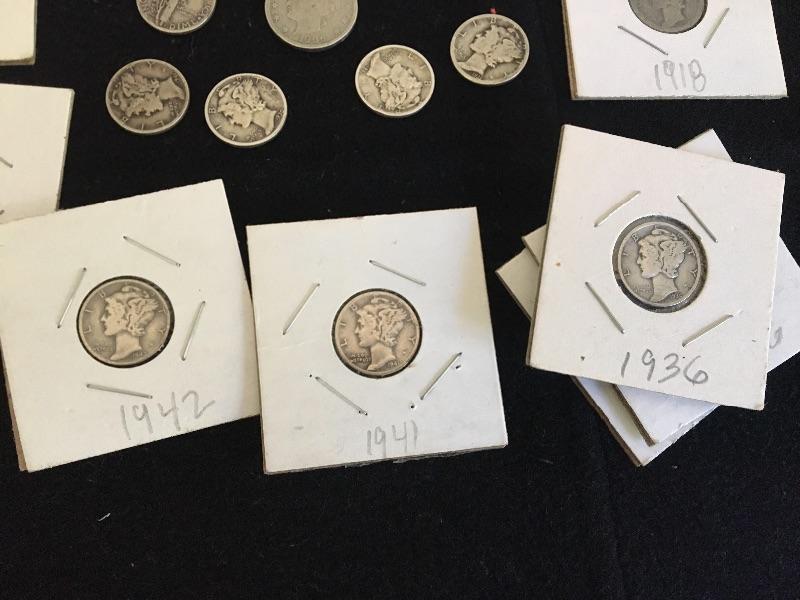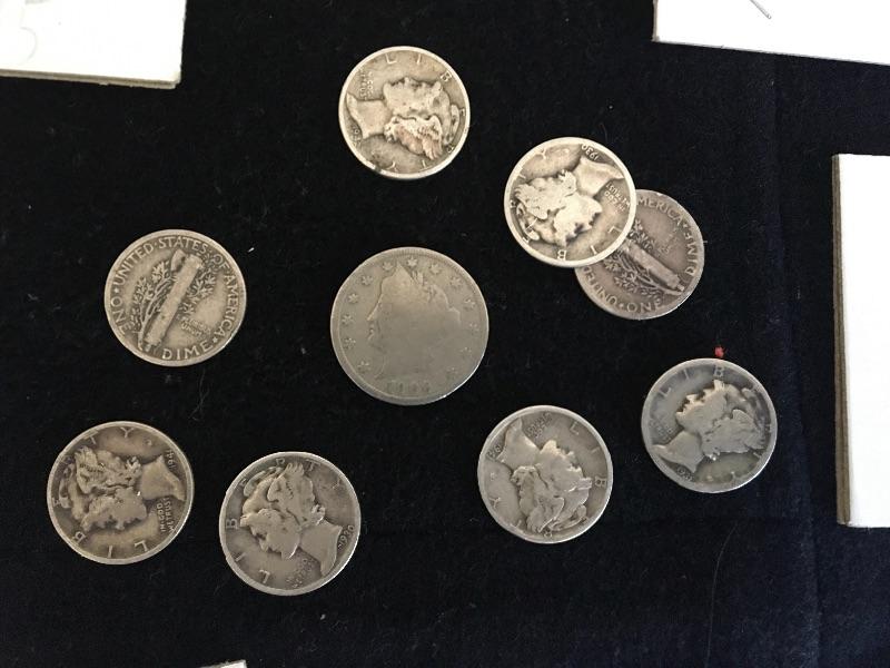 Includes 18 dimes, 2 half dollars and 1 “V” Nickel.