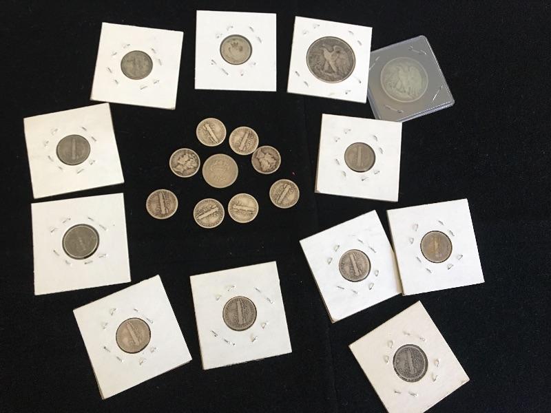 Coin Collection with Silver Walking Liberty Half Dollars, Mercury Dimes and more...