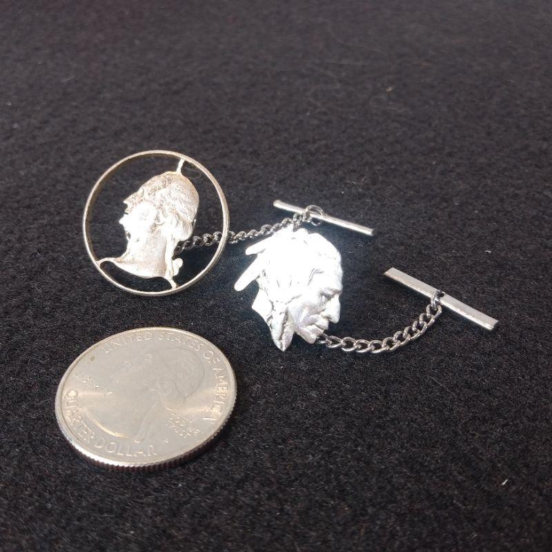 Laser cutting of coins was a real fad in the 60s. This offering is for two such items. One is a quarter and one is an Indian Nickel. Very different. Both are in very good condition.