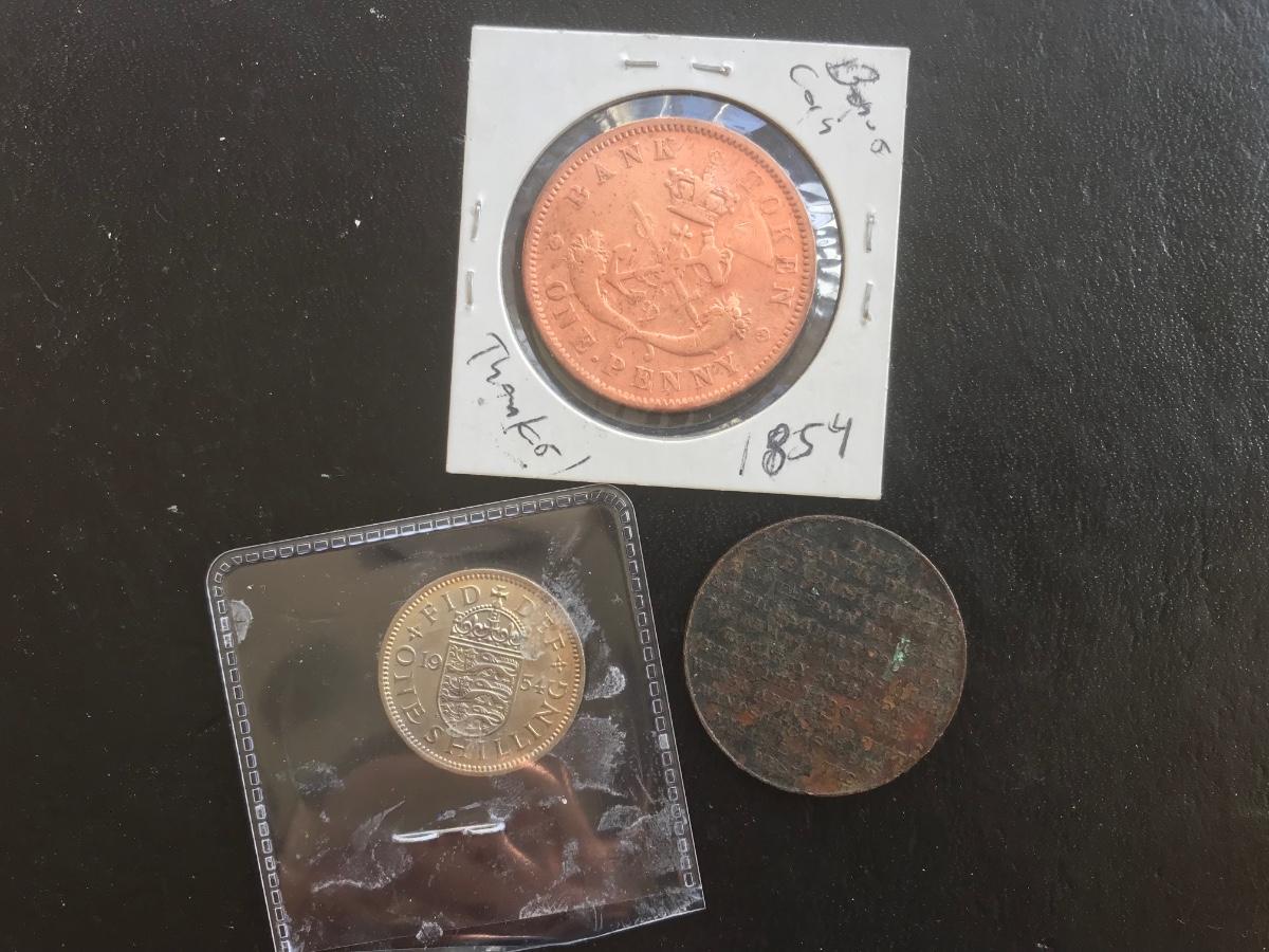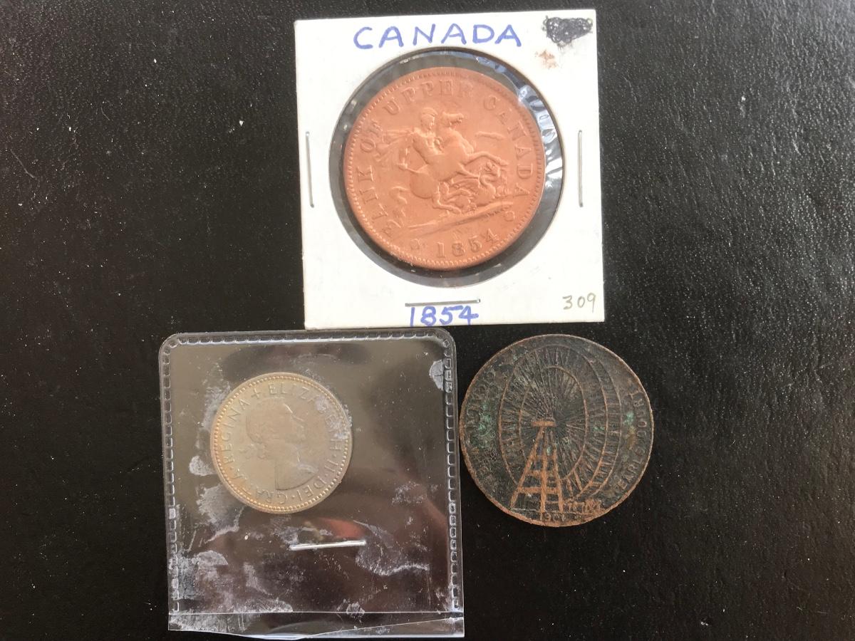 1901 earls court, 1854 Canada bank token 1954 one shilling