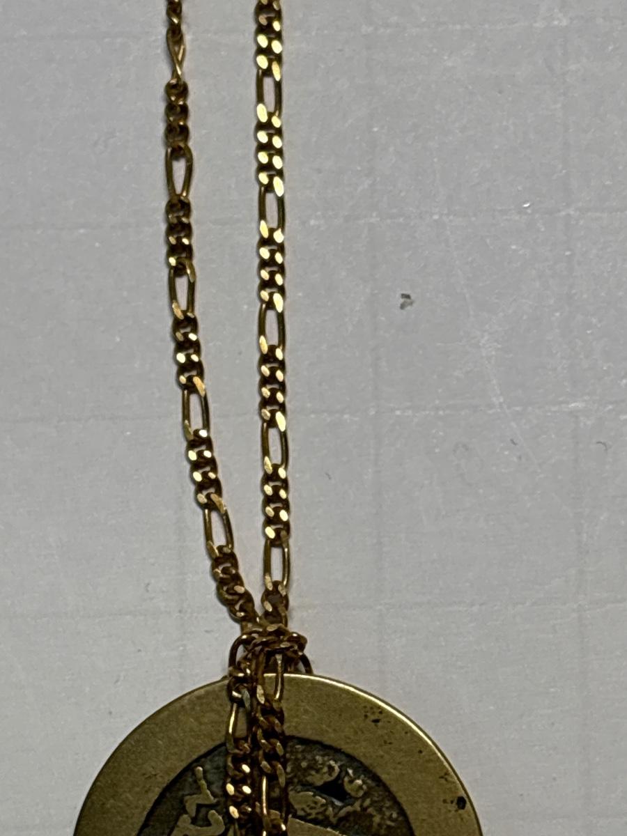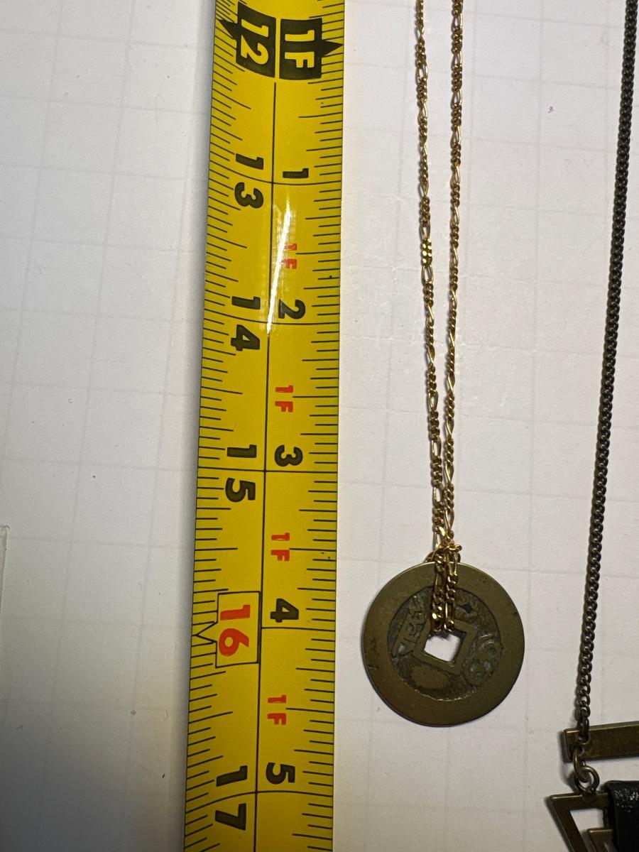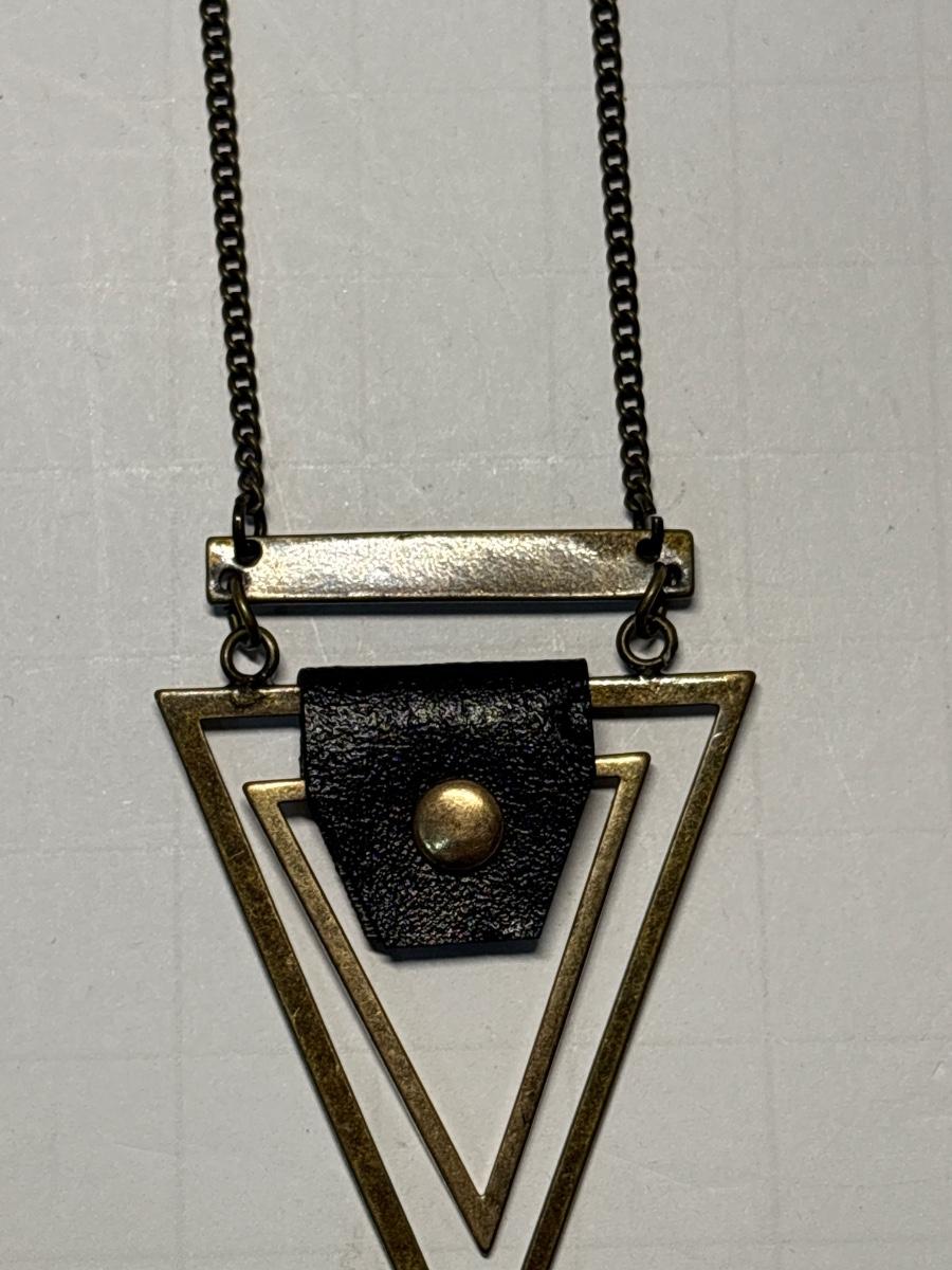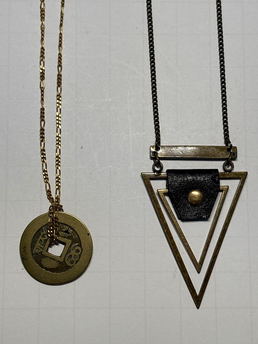 Coin necklace & metal/leather triangle necklace