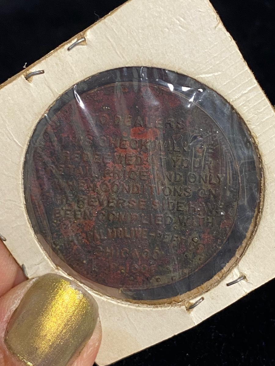 Vintage Palmolive One Soap Cake Free Coin Token. Has some discolor, may be brass token.