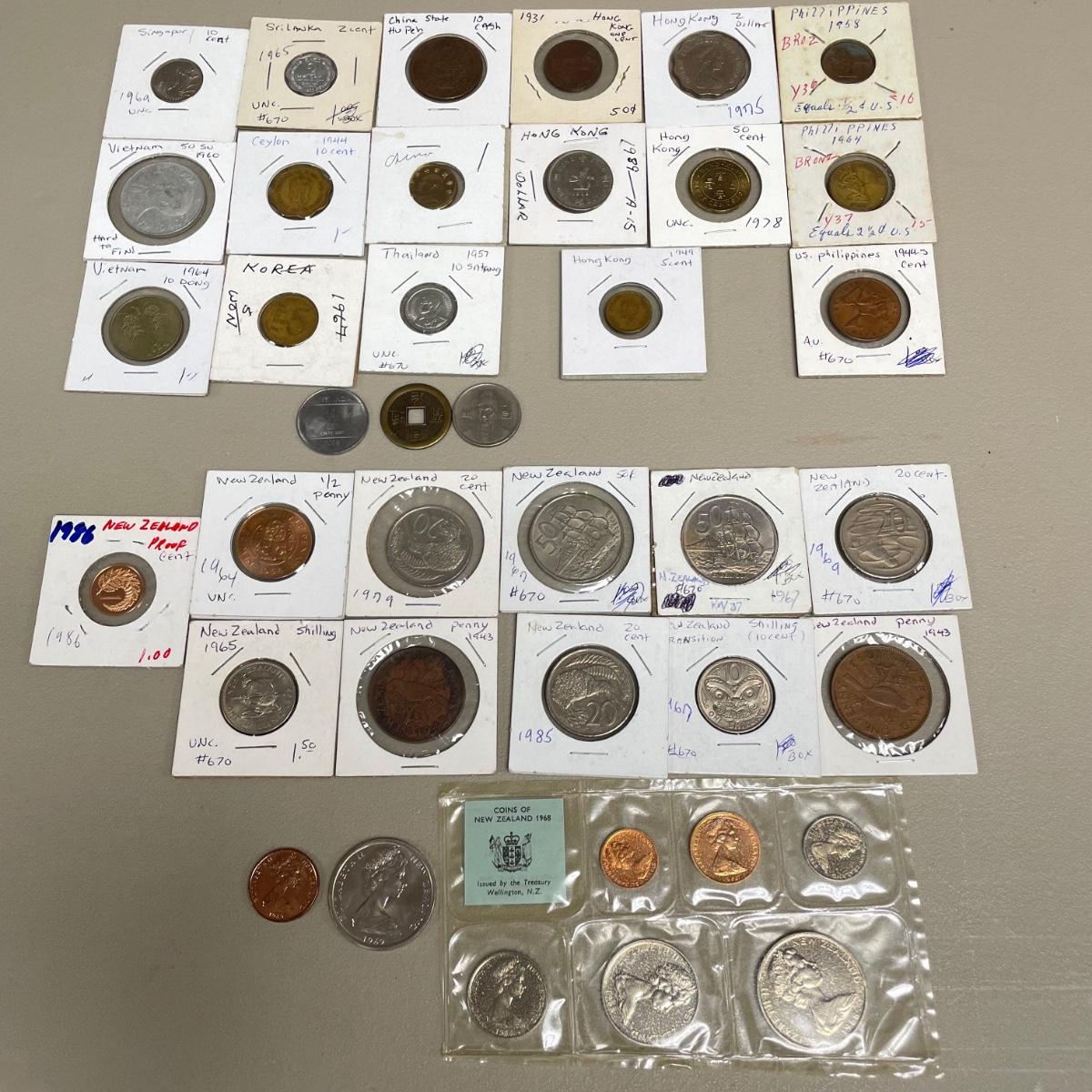 Almost 40 coins from Asia and New Zealand including a polished set in plastic from The Royal Mint London. See images for lot inventory. All sales are final. No returns or refunds. Please bid accordingly. Shipping available.