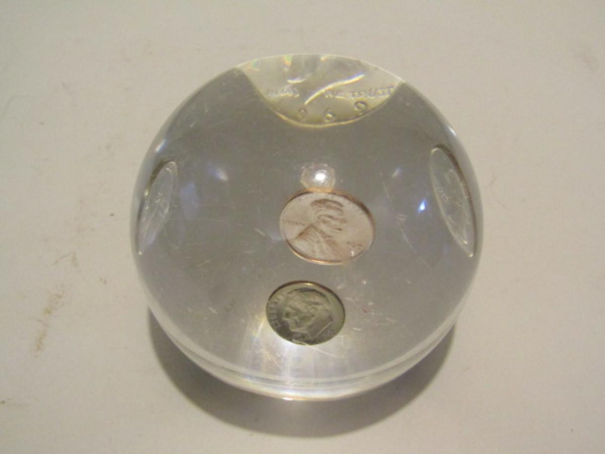 Coins in Resin Ball- 1967 and 1969. Penny, nickle, dime, quarter, and half dollar.
