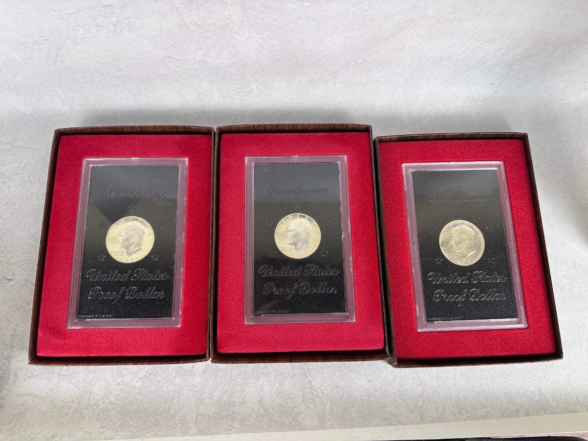 Coins: Proof Eisenhower Silver Dollars in Display Case (qty: 3)