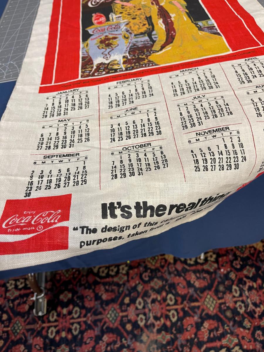 Coke A Cola Fabric  Calendar 1973