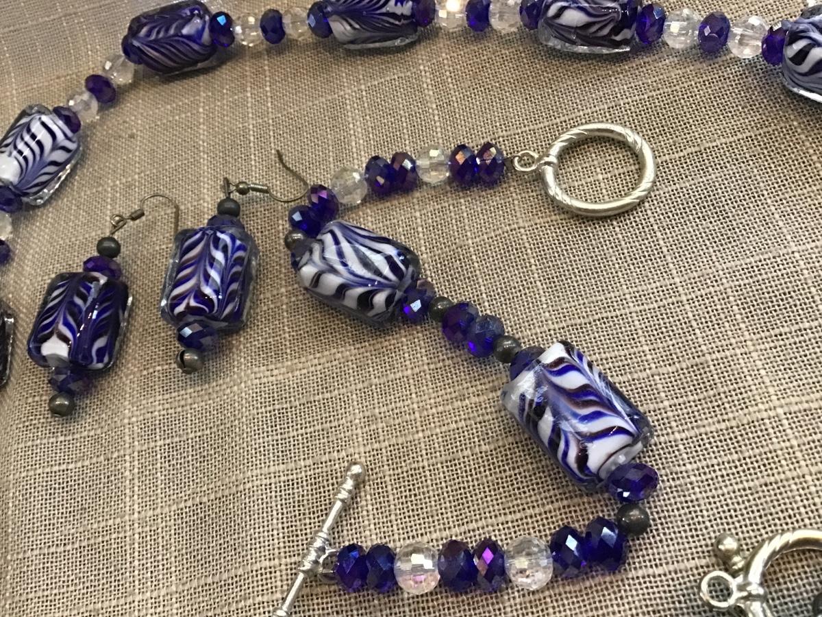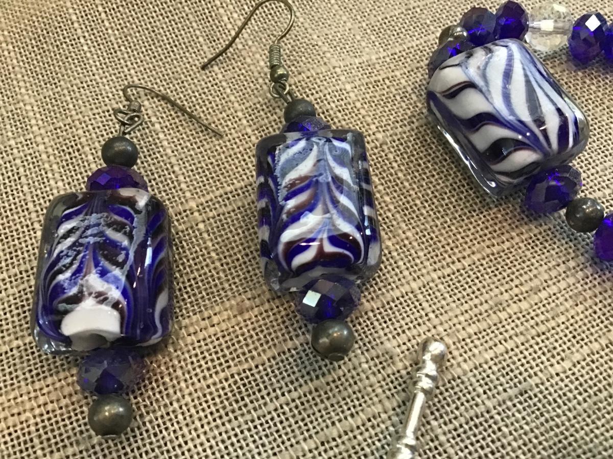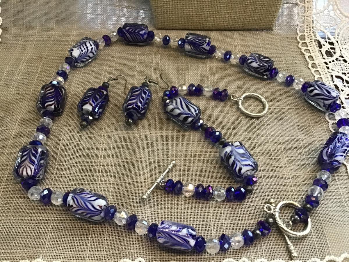 Colbalt Blue Glass Set With Crystal Glass Beads.