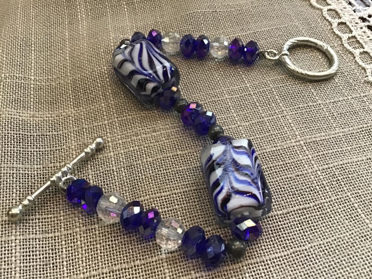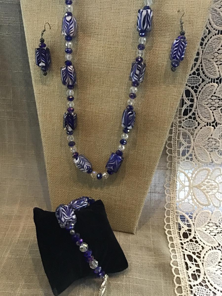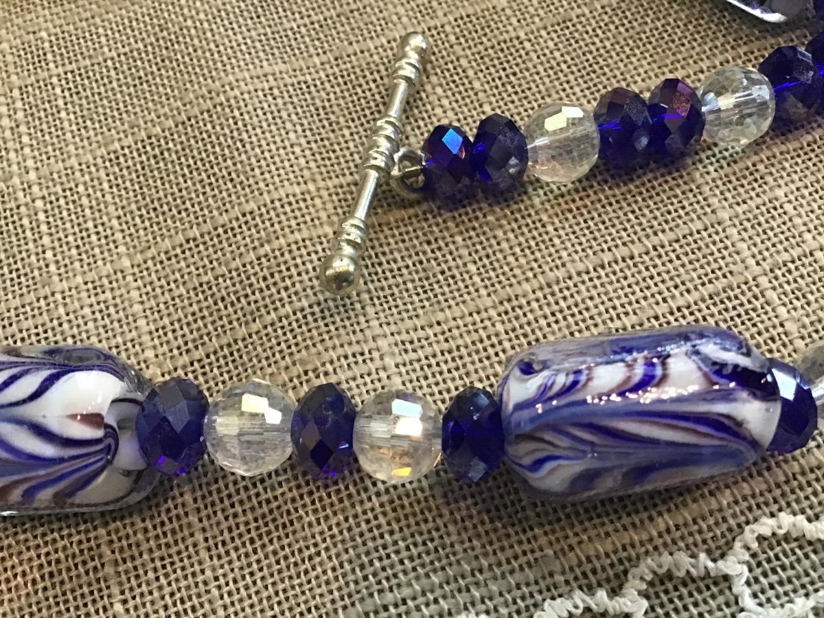Colbalt Blue Glass Set With Crystal Glass Beads.