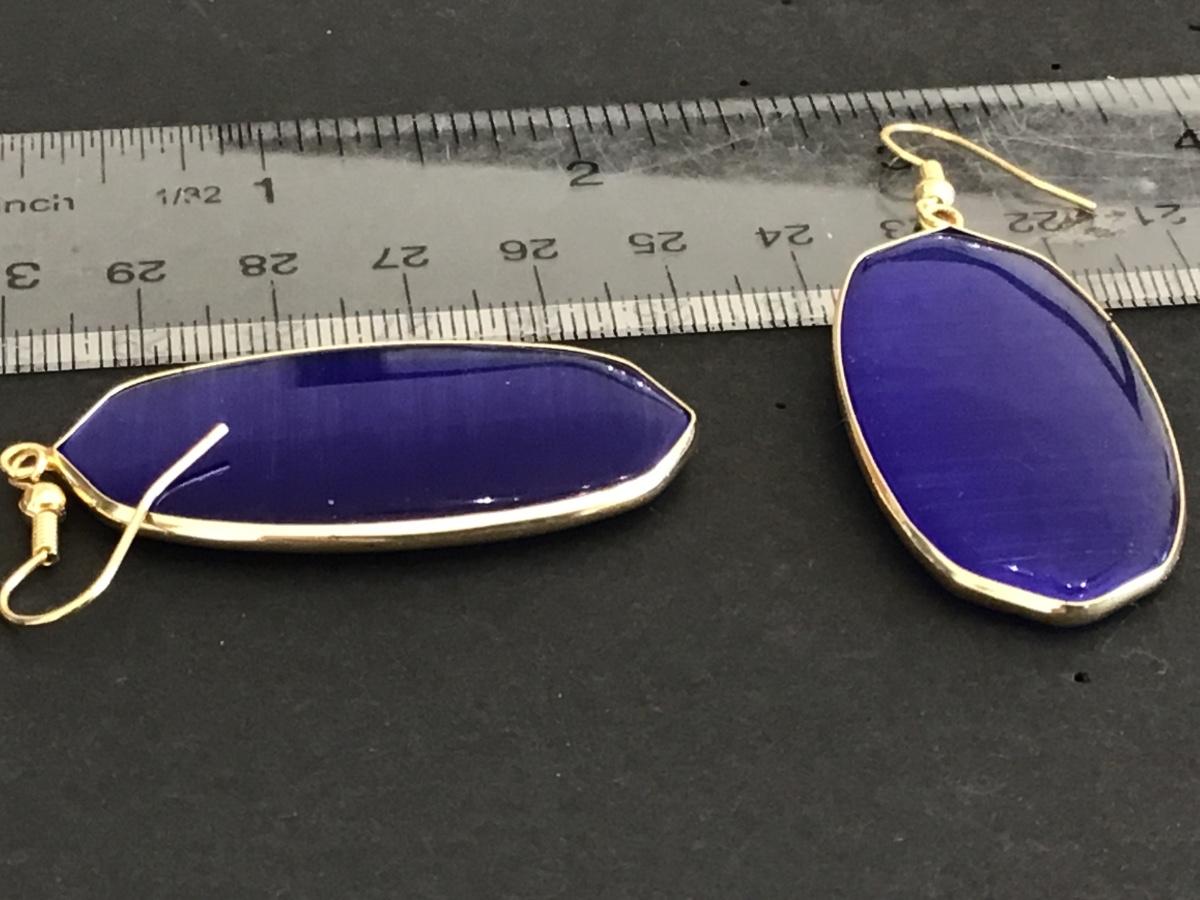 Colbalt Blue Tone Glass Earrings Gold Tone. Nice