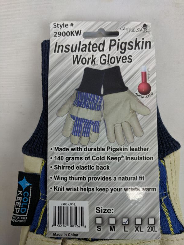 Cold Keep Insulated Pigskin Work Gloves, Large - New