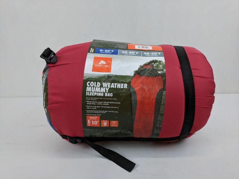 Cold Weather Mummy Sleeping Bag, Red, 0-20F Degrees, Ozark Trail - New