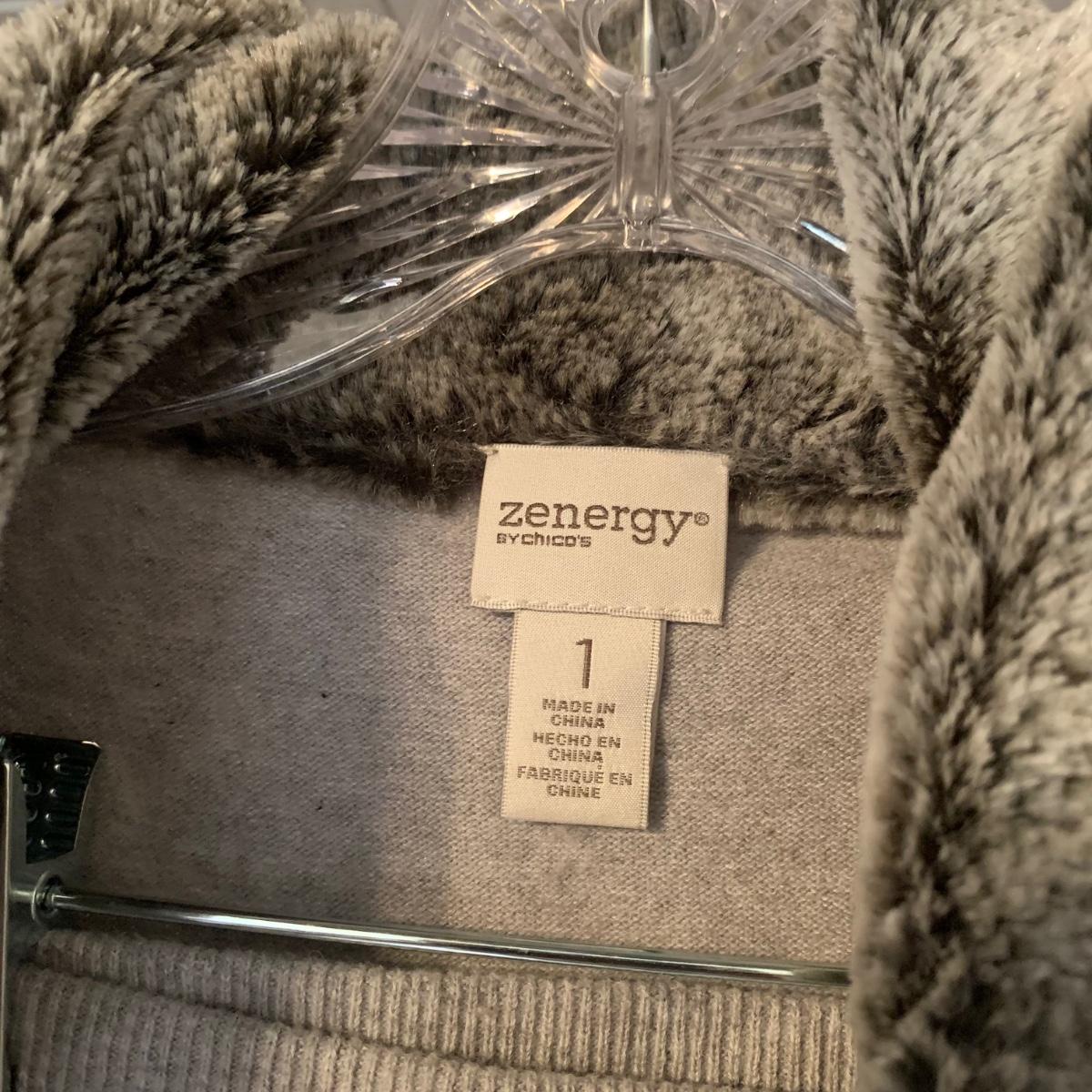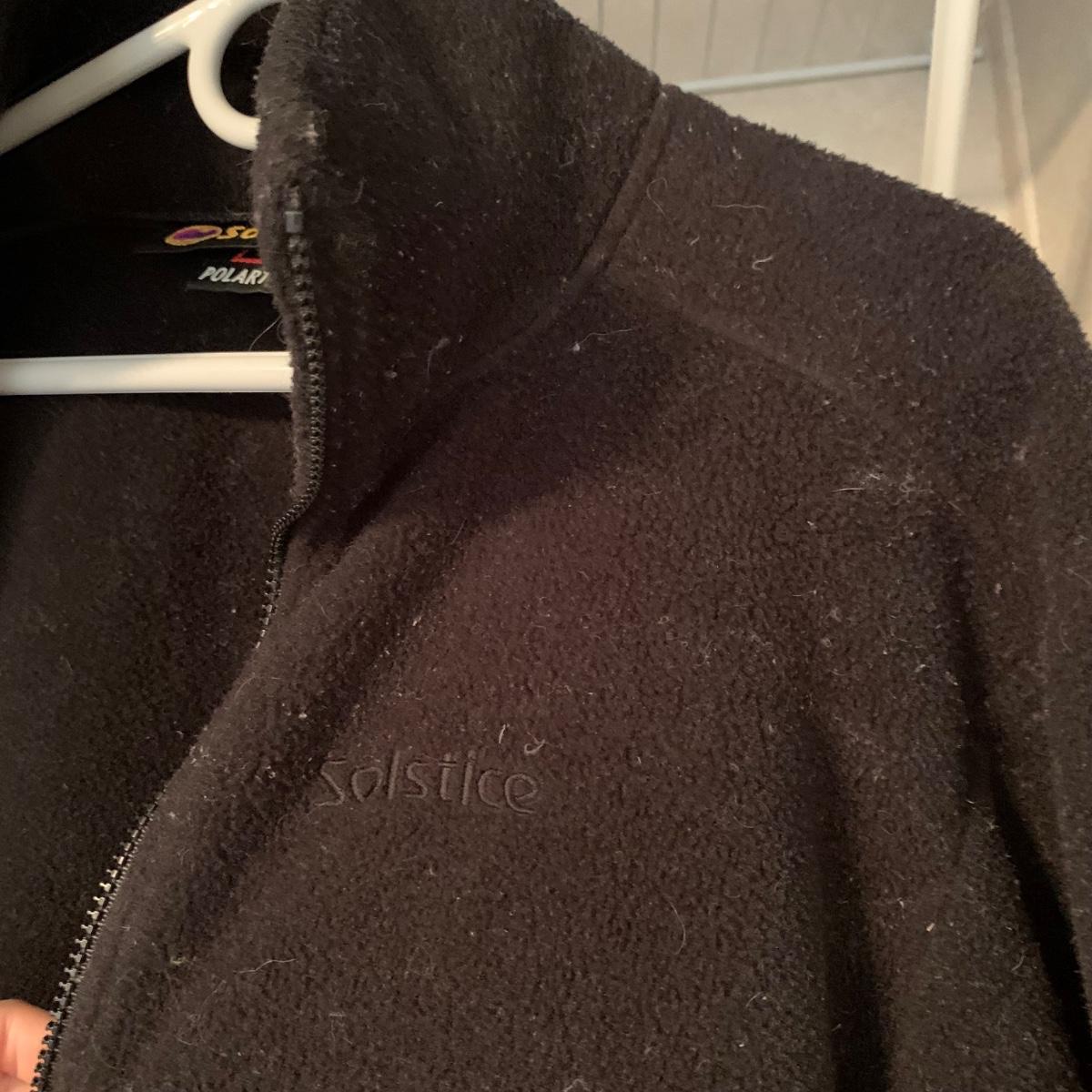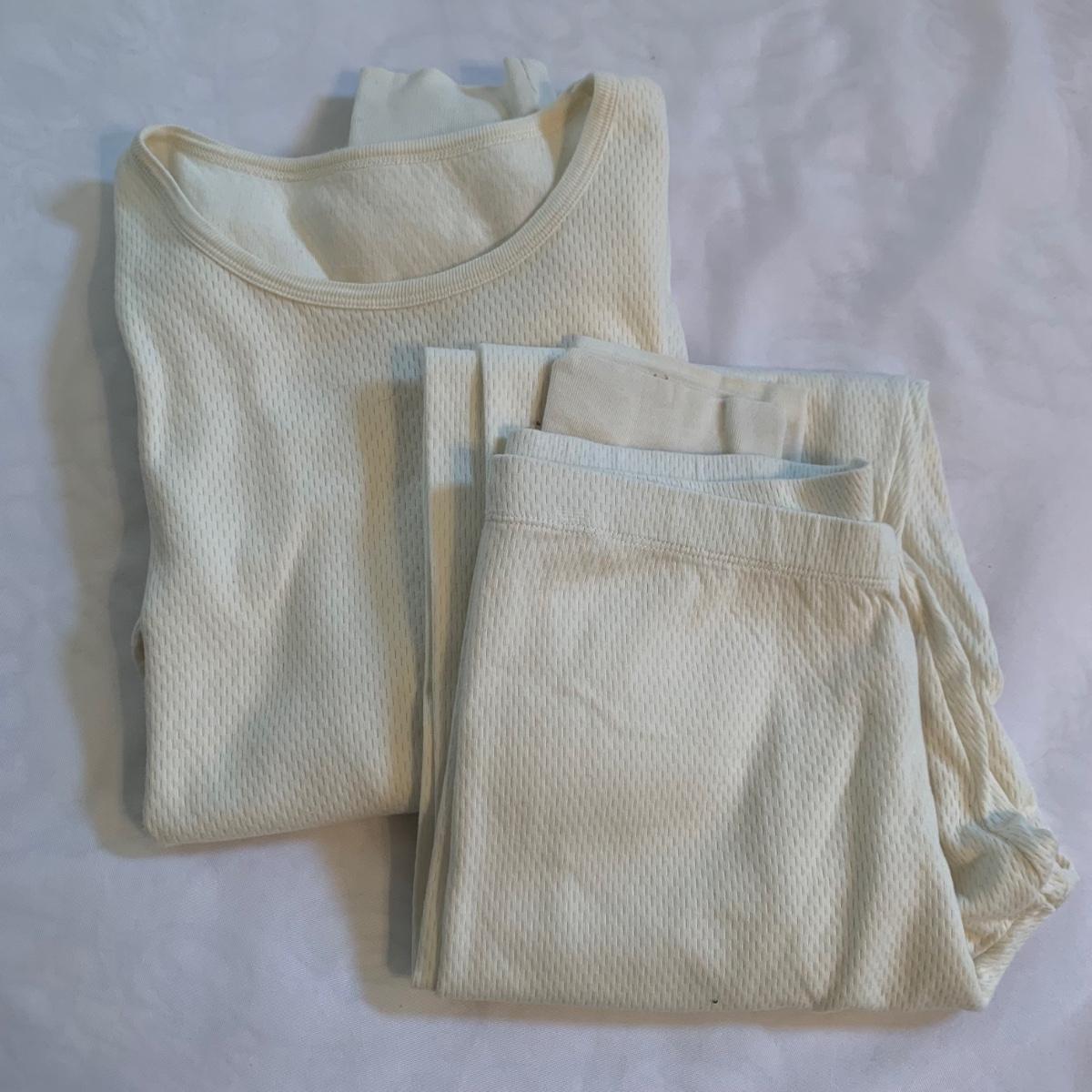 A variety of clothing for cold weather, with a hat, gloves, a neck warmer, and scarves. There is a size 6 organic cotton thermal set by Cottonique, two size M fleece-like sets by Columbia and Solstice, a soft and cozy Zenergy set by Chicos (size 1), two vests, a fleece pullover jacket, a fleece sweatshirt, and a Tri-Mountain fleece-lined jacket. Six pairs of gloves are included, as well as a cute hat, an incredibly soft neck warmer, and three scarves. The Solstice Polartec set has a lot of fuzz on it, but it comes off with a lint roller so should be removable.
