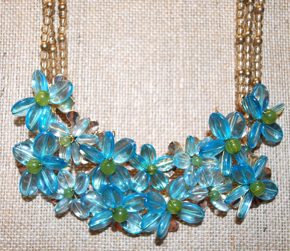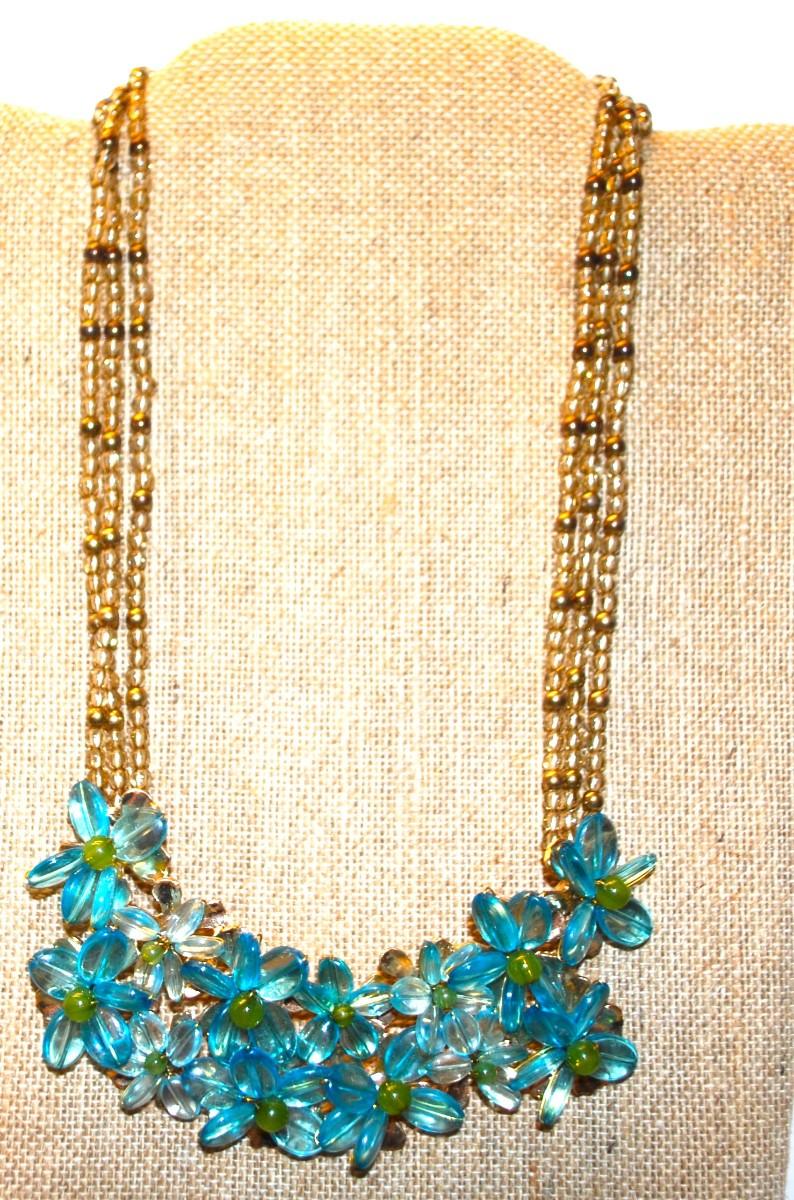 "Coldwater Creek" Blue Flowered Acrylic Cluster Necklace 16" L