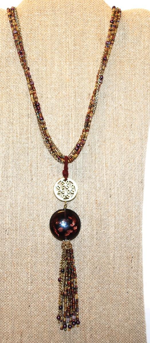 "Coldwater Creek" Elegant Heavy Beaded Swag and Chain Necklace with Disc Accents 26" L