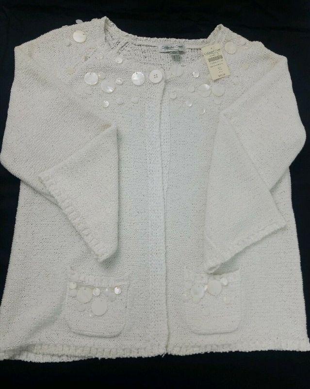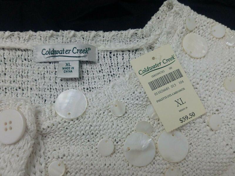 Coldwater Creek Misses 18 XL Paillette Button Detail Cardigan Sweater, Ivory