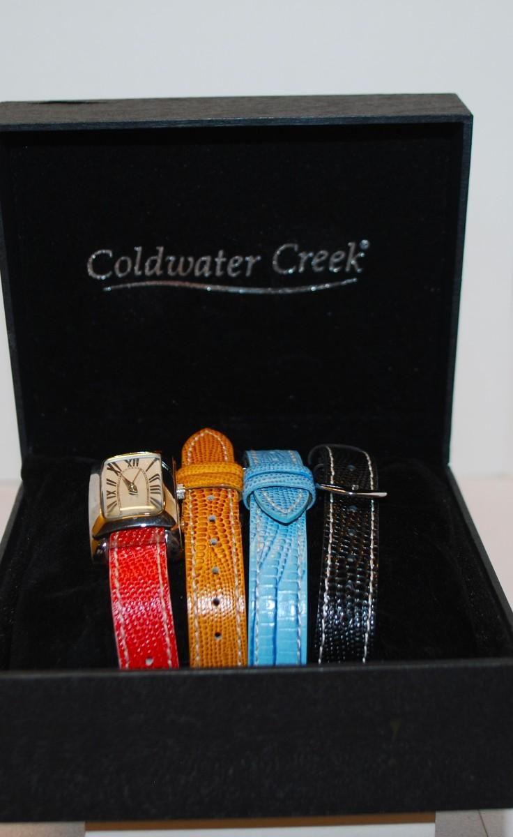 "Coldwater Creek" Watch Set with Rectangle Watch Face & 4 Assorted Colored Bands with Box