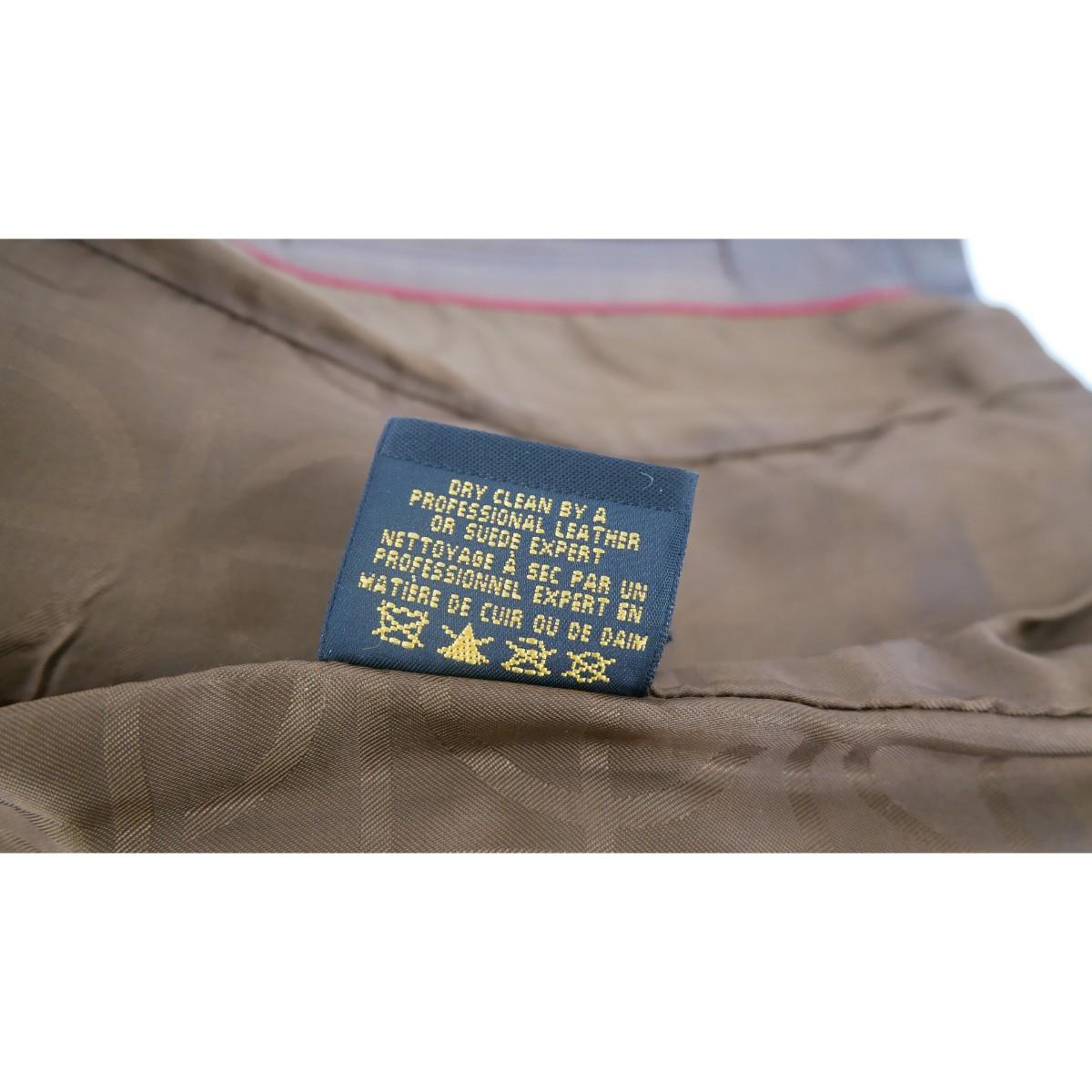 Designer Cole Haan genuine brown lambskin leather jacket in women's size XS. Good overall condition, has some wear (see photos). Approximate measurements: across chest 15", shoulder to bottom 20", arm length 23.5". Weighs 1 lb 8 oz. This lot has a reserve price. (F4)