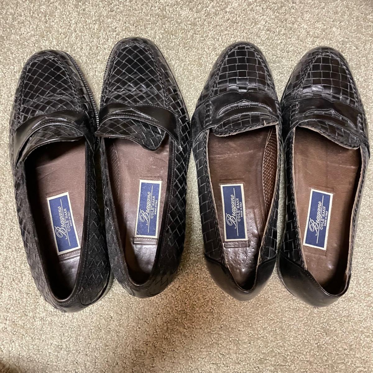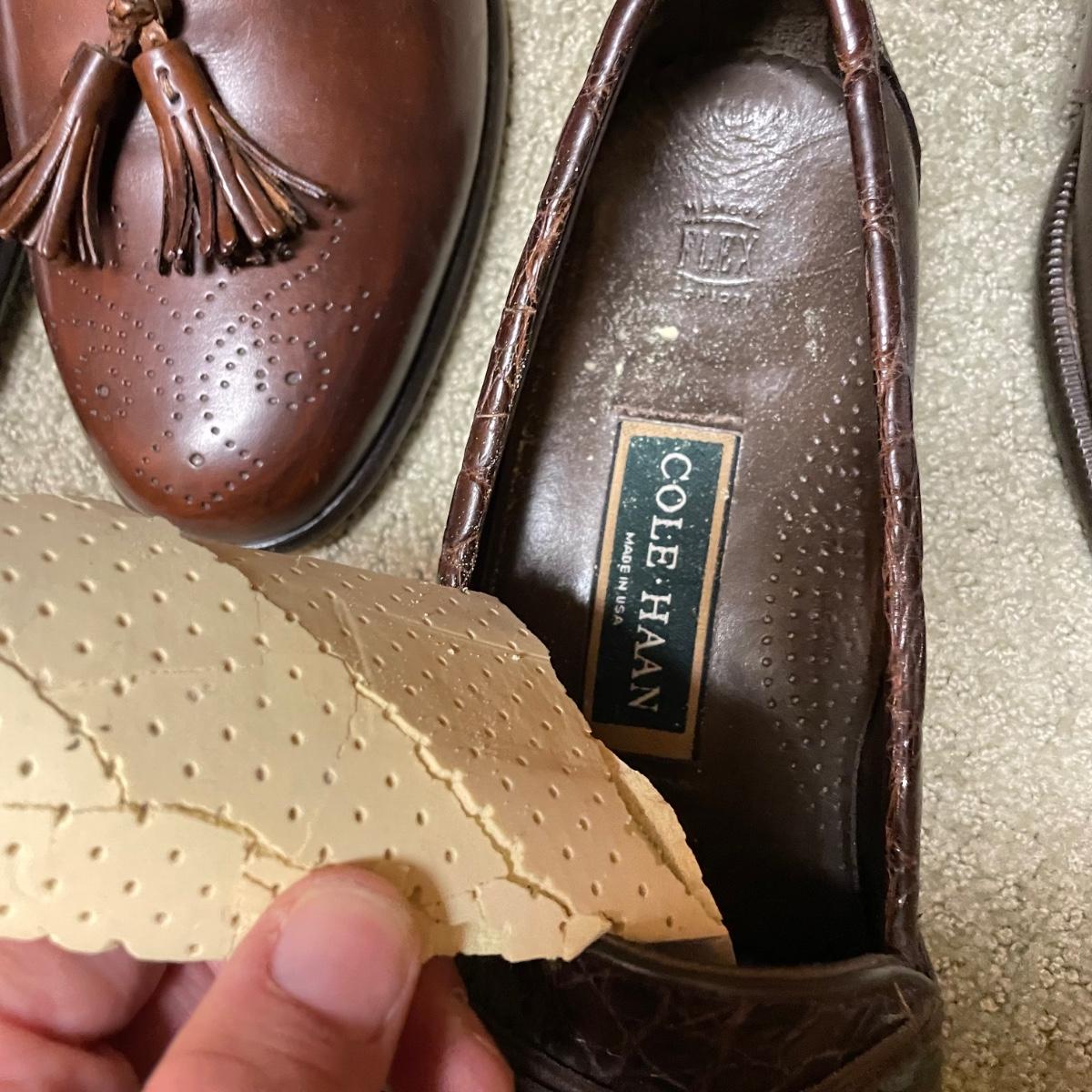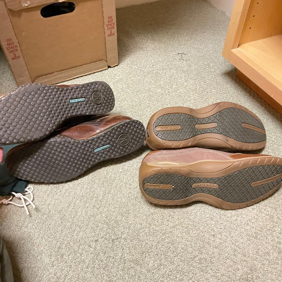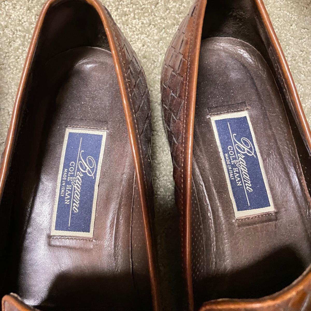 Eight pairs of Cole Haan loafers, two pairs of Cole Haan tennis shoes and one pair of Rockport sneakers. Ten pairs are men’s size 10, one pair of loafers is sized 9.5. Lot includes three pairs of Cole Haan dust bags. Shoes vary in condition, most are a bit dusty, but otherwise clean. Some have removable inserts (the one half removed in photos will need to be replaced. Some odd shoe trees shown in images are included. See images. Shipping available.