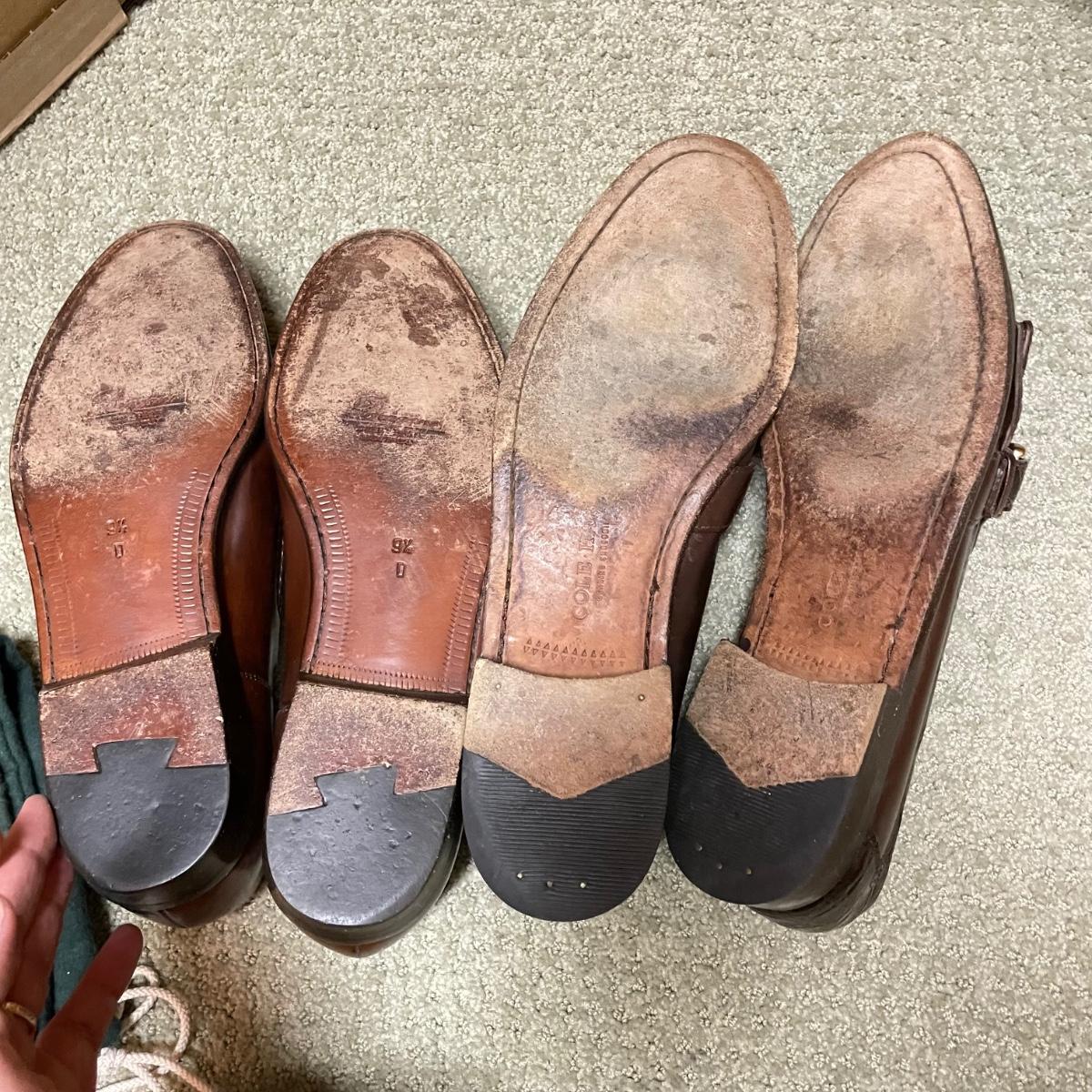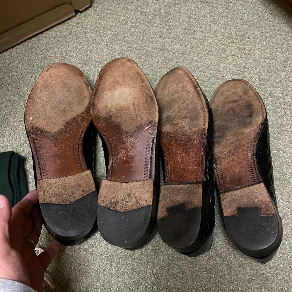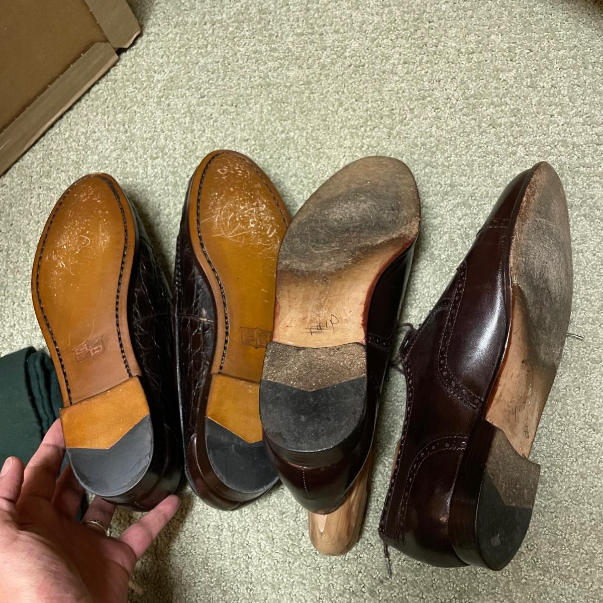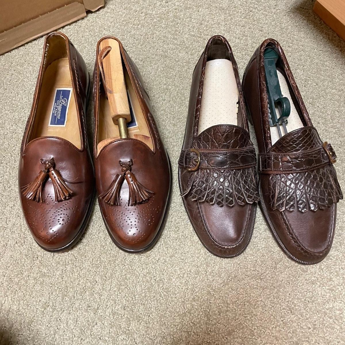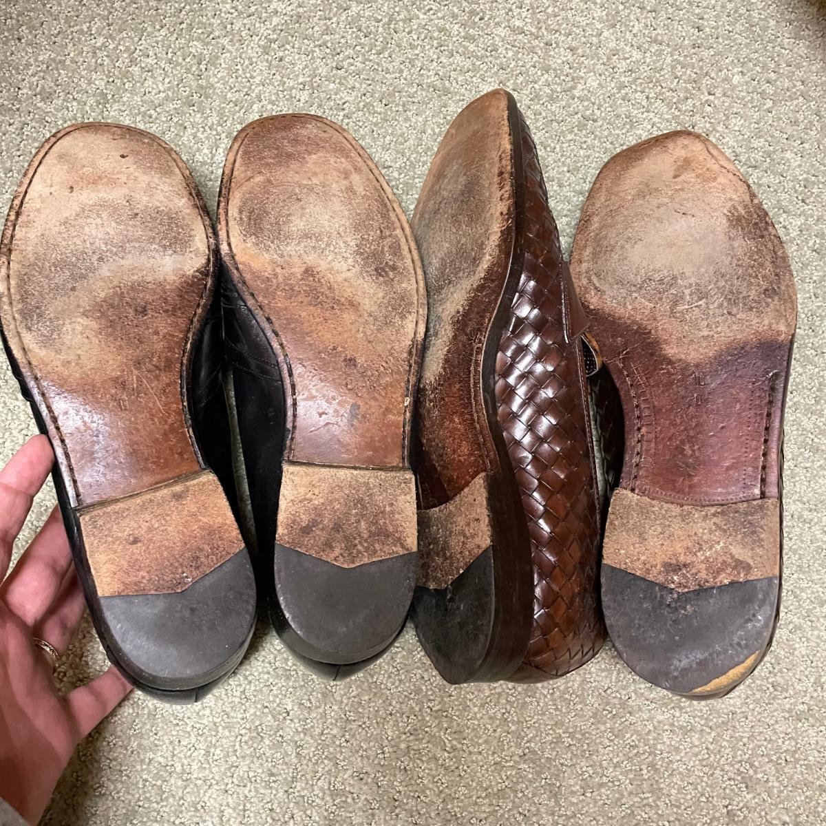 Eight pairs of Cole Haan loafers, two pairs of Cole Haan tennis shoes and one pair of Rockport sneakers. Ten pairs are men’s size 10, one pair of loafers is sized 9.5. Lot includes three pairs of Cole Haan dust bags. Shoes vary in condition, most are a bit dusty, but otherwise clean. Some have removable inserts (the one half removed in photos will need to be replaced. Some odd shoe trees shown in images are included. See images. Shipping available.
