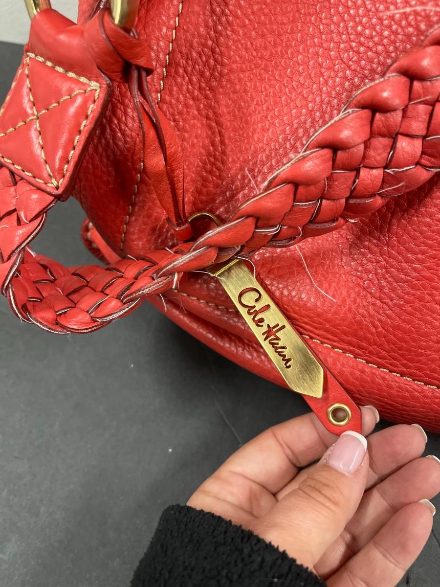 Cole Haan red, pebbled leather, hobo bag. Excellent condition. 12" x 13", approx.