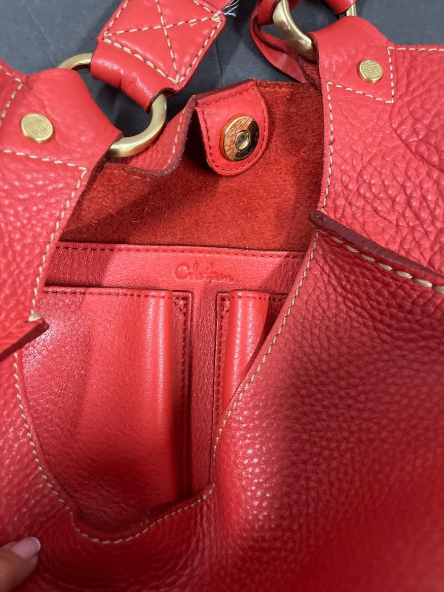 Cole Haan Red Pebbled Leather Hobo Handbag