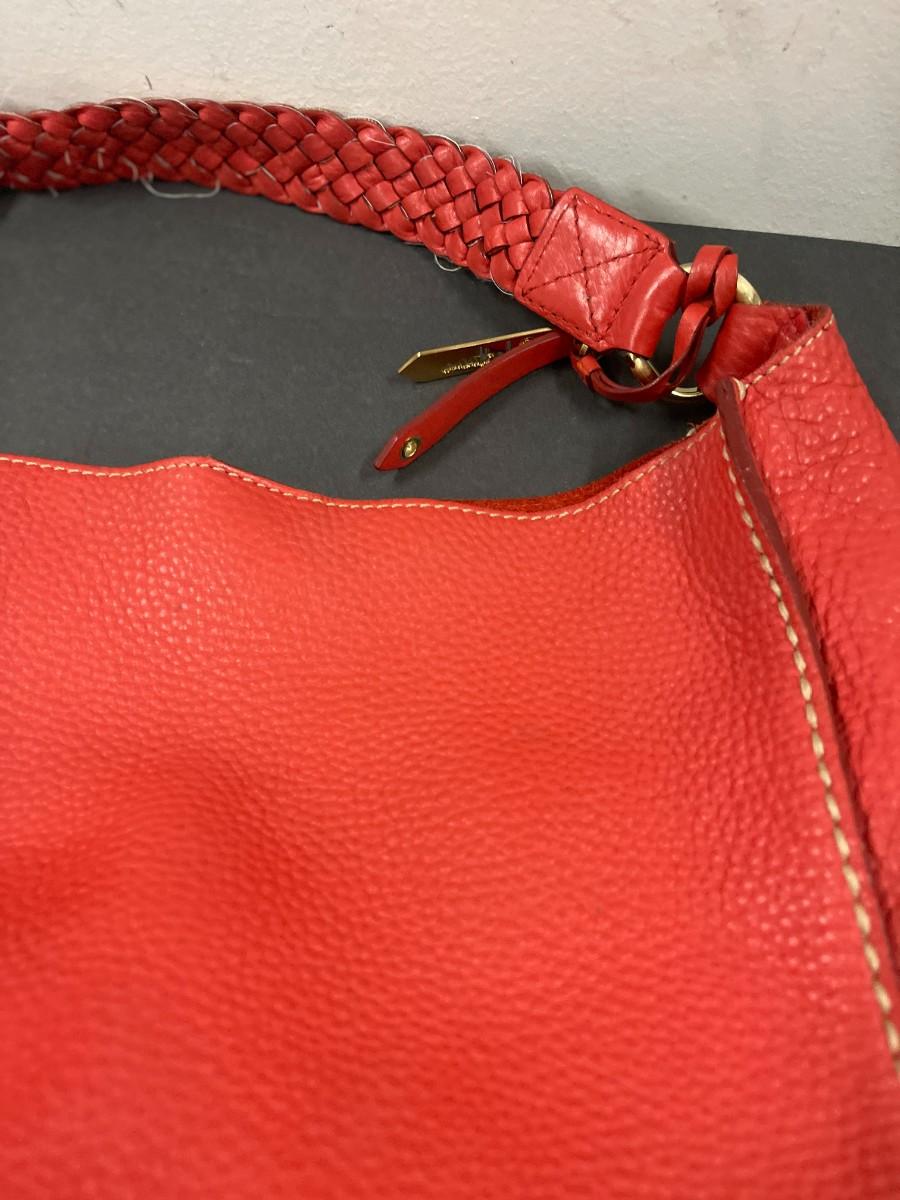 Cole Haan Red Pebbled Leather Hobo Handbag