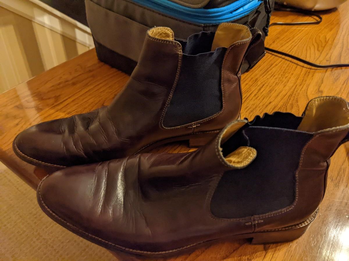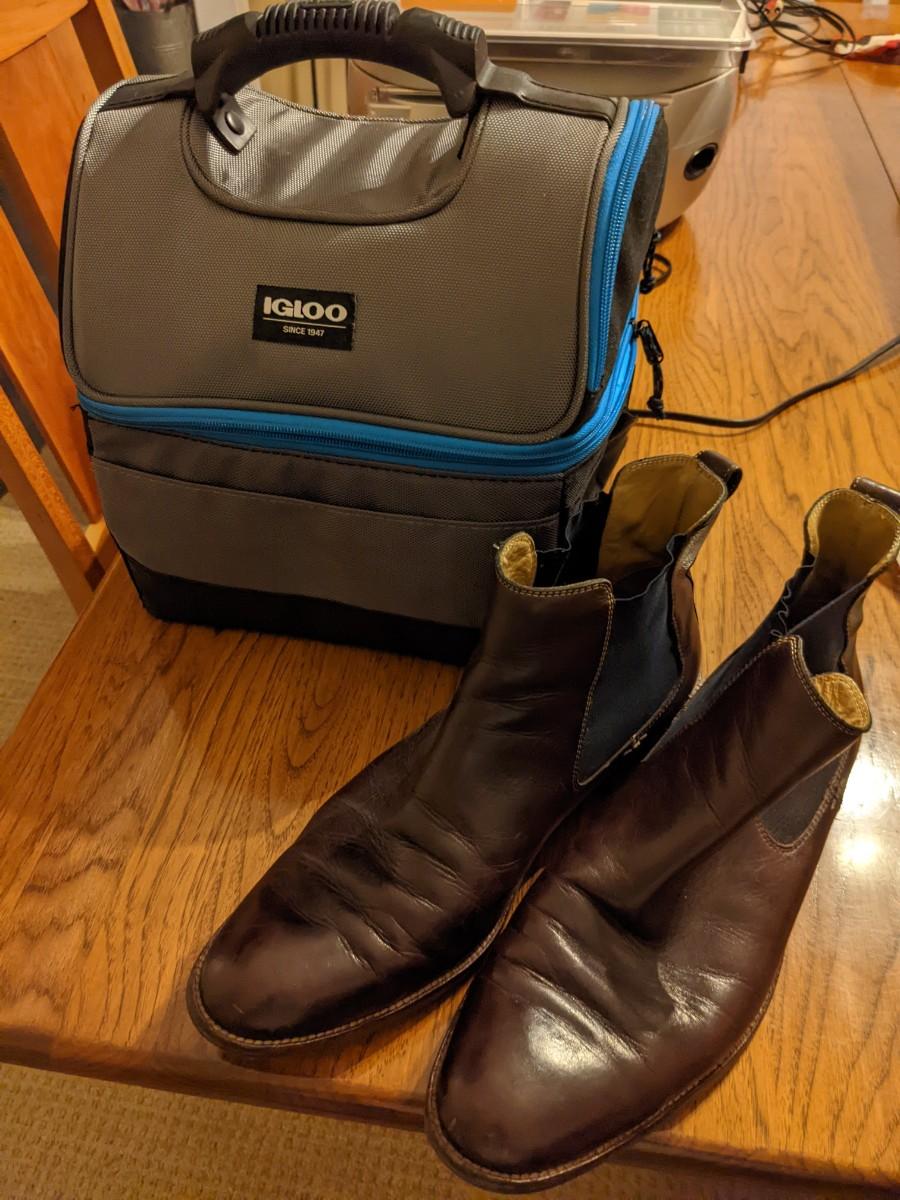 Cole Han men's chelsea boots and Igloo lunchbox