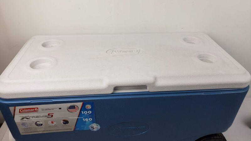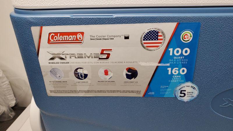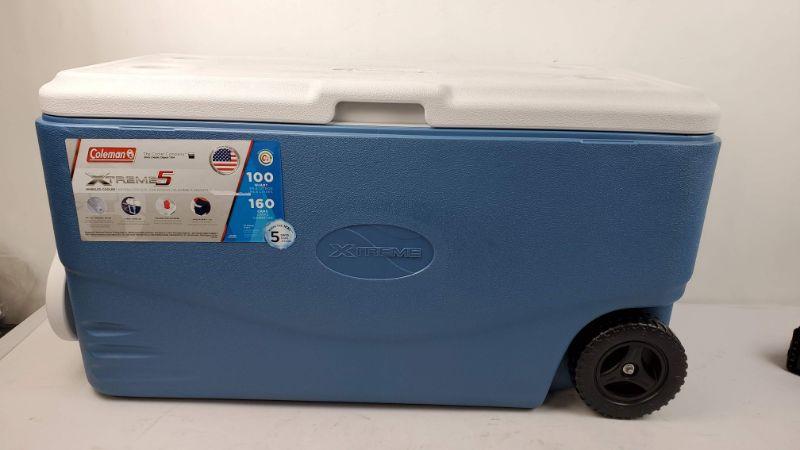Coleman 100 QT XTREME5 Day Heavy-Duty Cooler W/Wheels, Blue - New