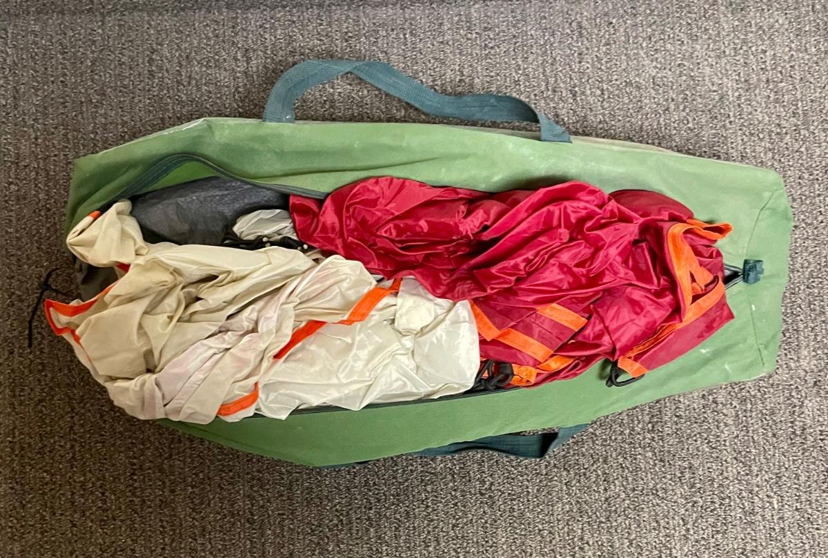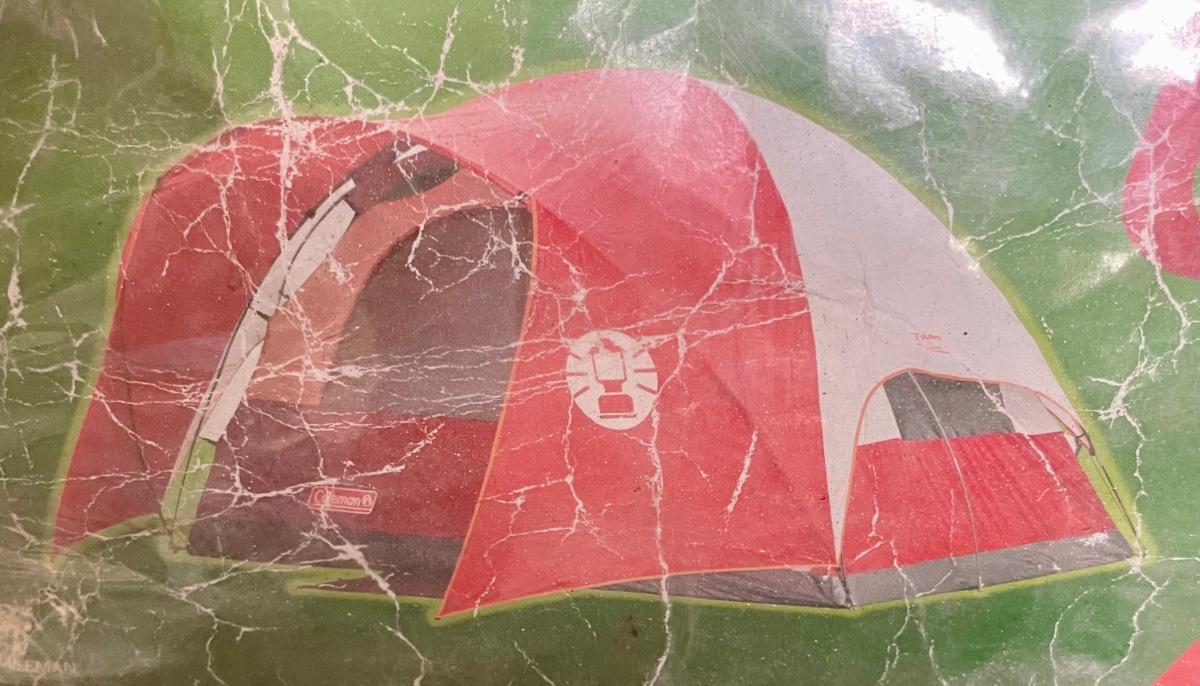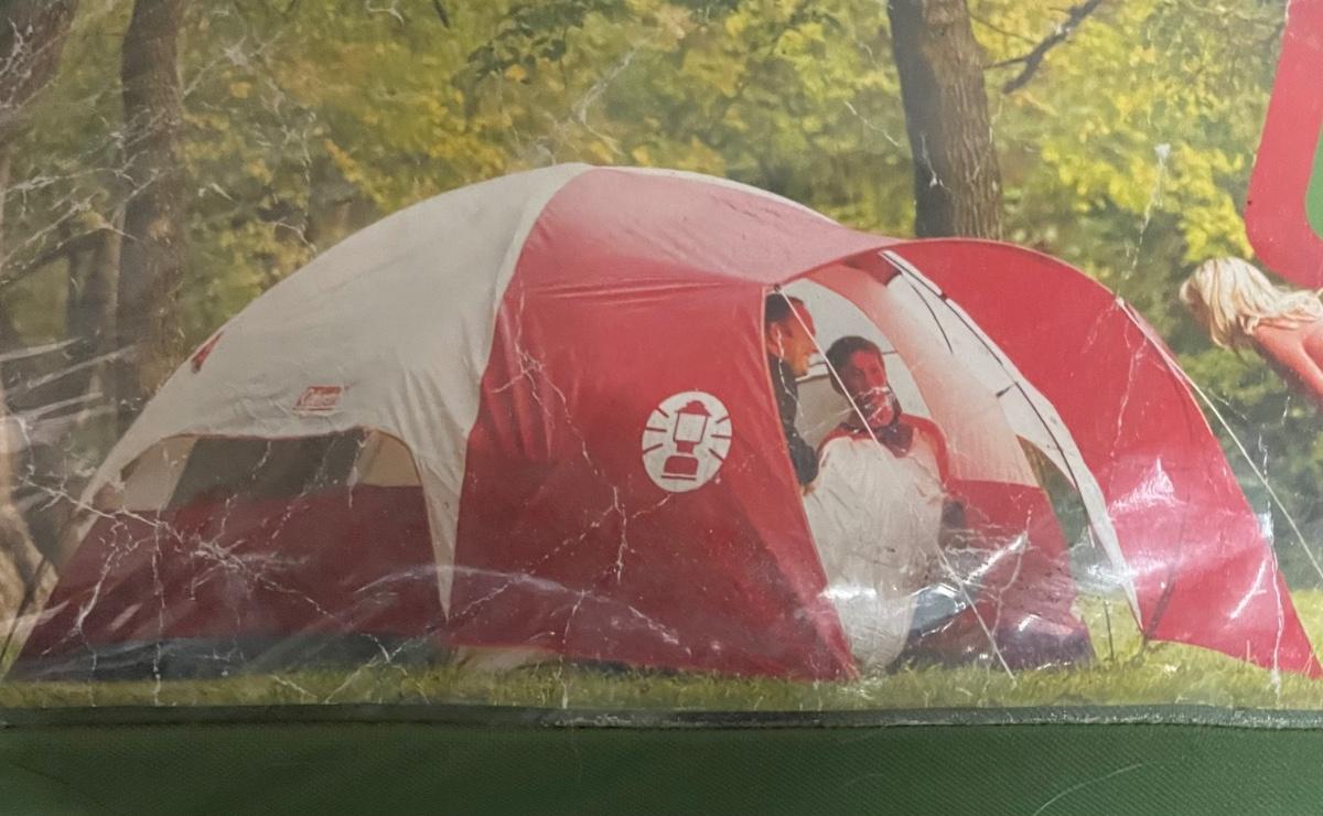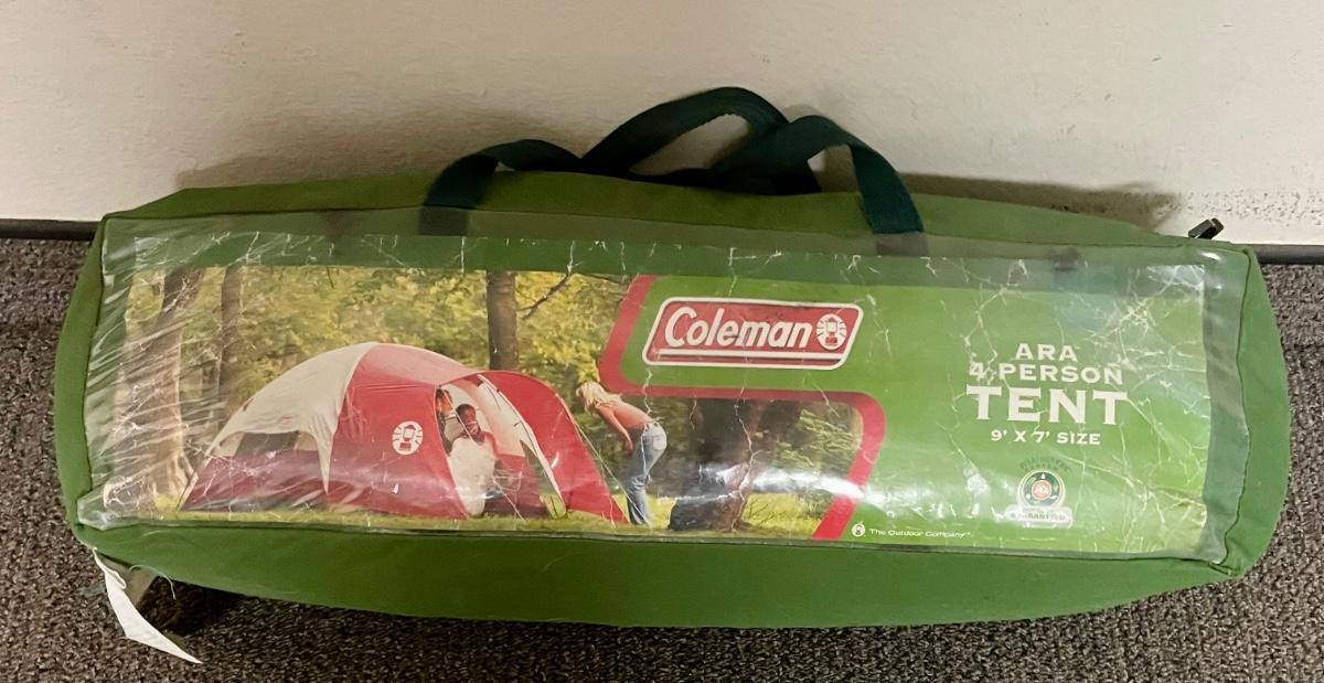 Used Coleman 3-person tent. In original canvas storage bag. Appears complete and undamaged, was not set up to fully examine or test. Last 2 photos were taken from the internet to show what the tent looks like once set up.