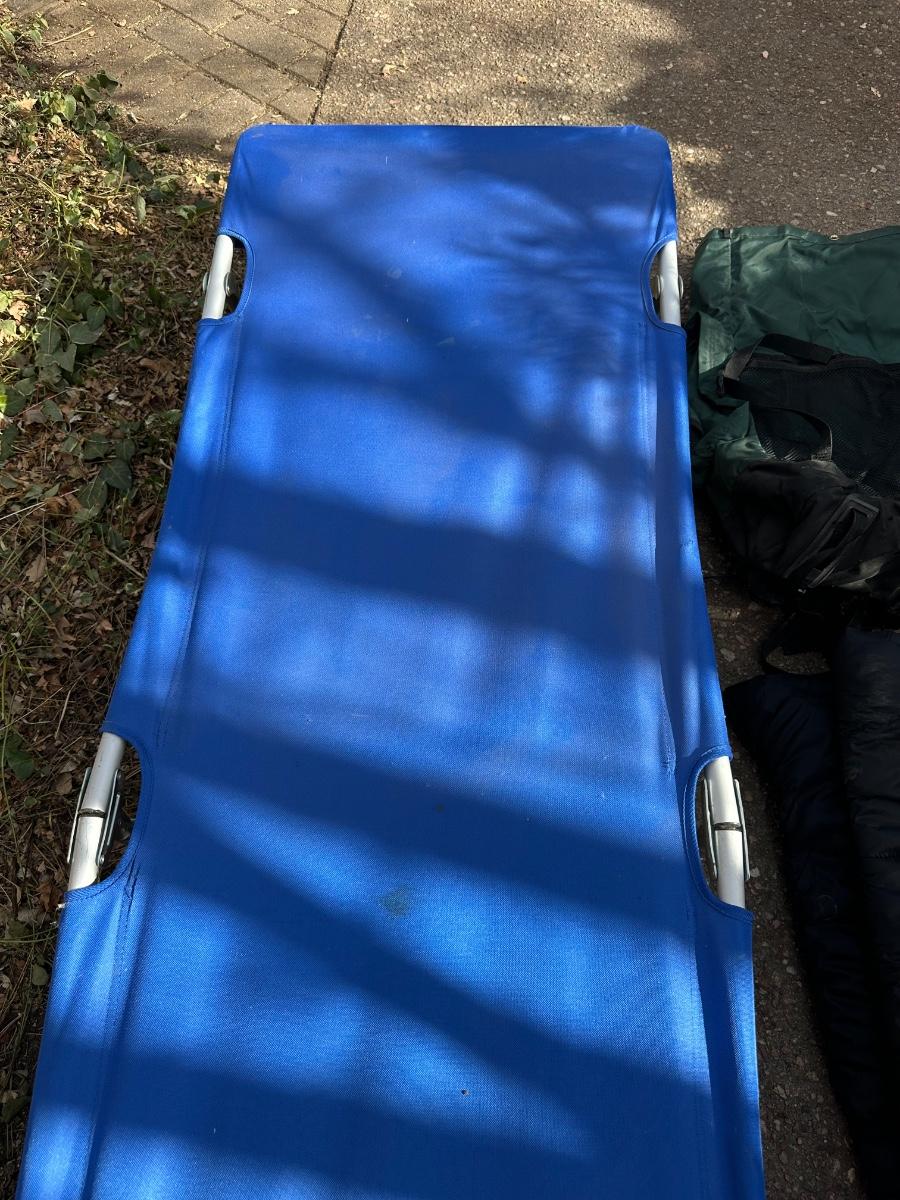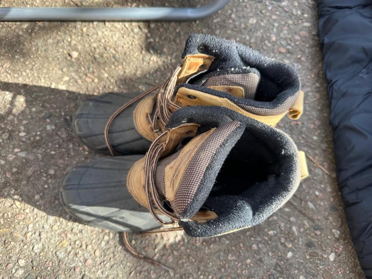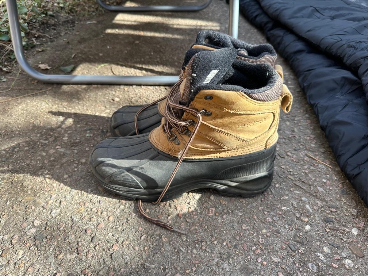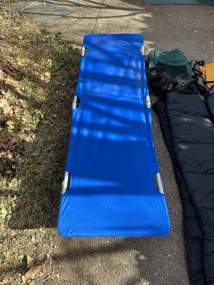 COLEMAN BACKPACK, 2 DUPONT SLEEPING BAGS, FOLDING CAMPING COT PLUS HIKING BOOTS SIZE 11