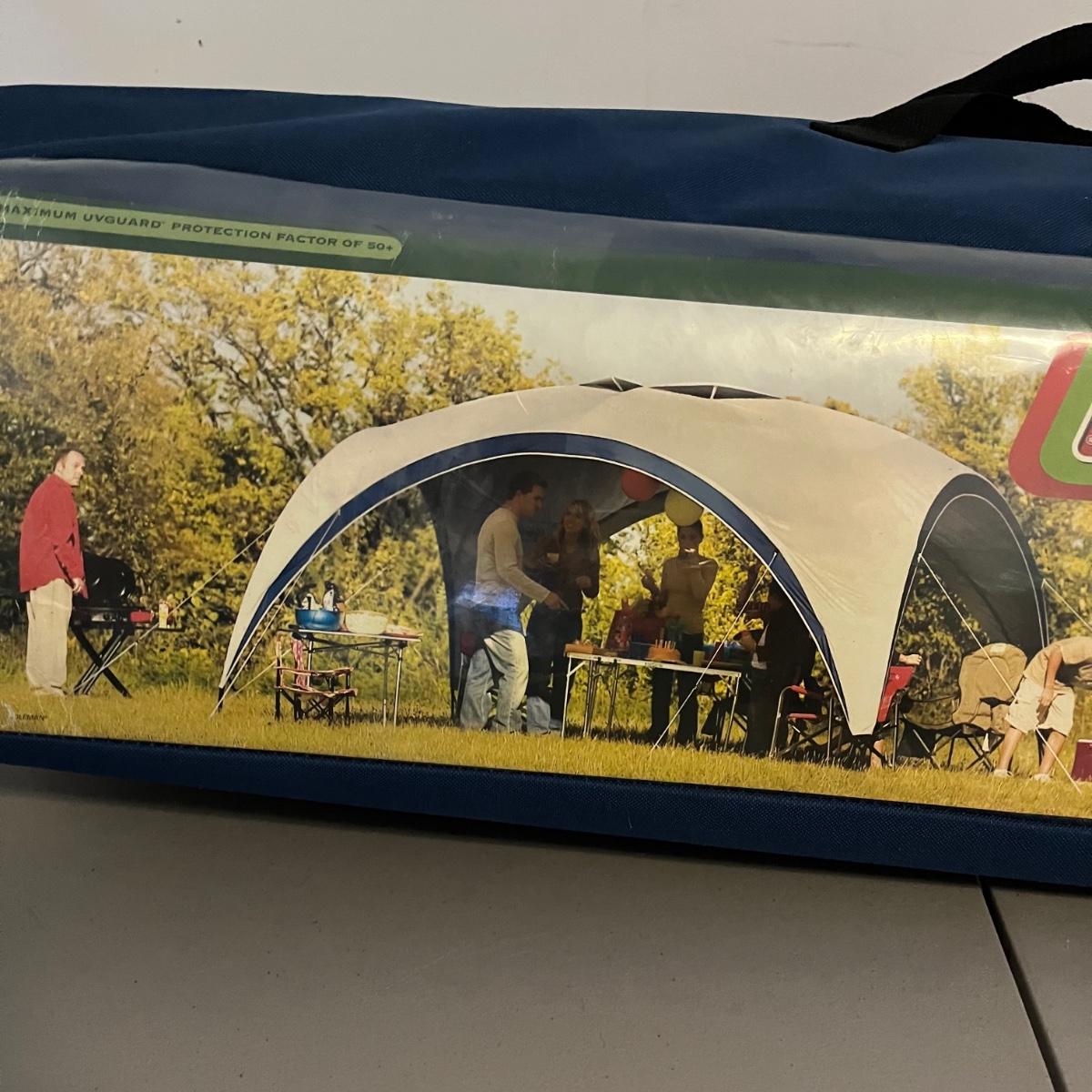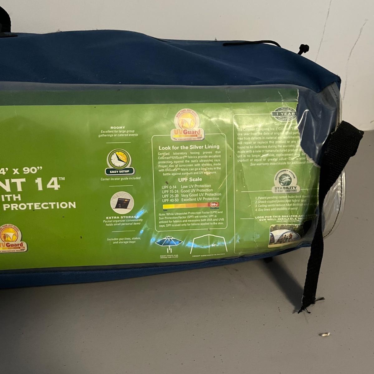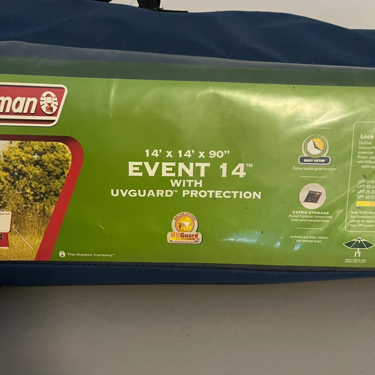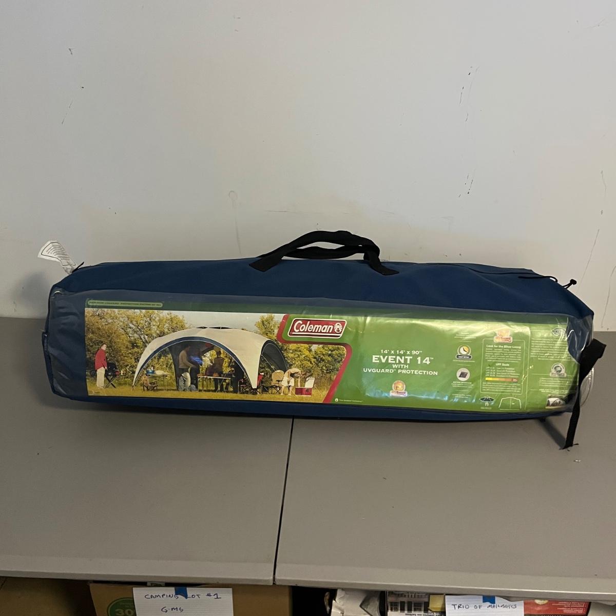 Lot includes a NIB Coleman event tent. Carrying bag has some wear, see pictures.