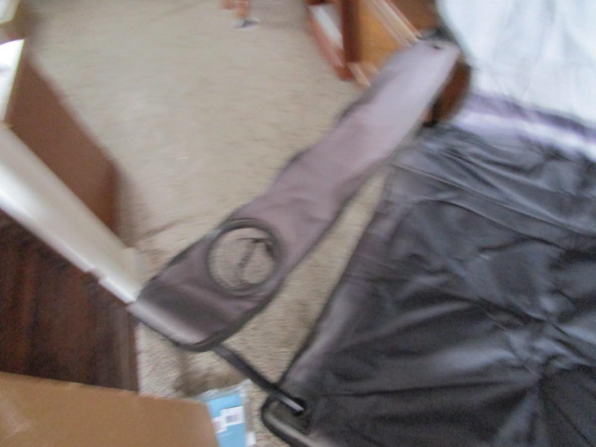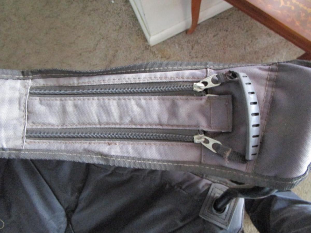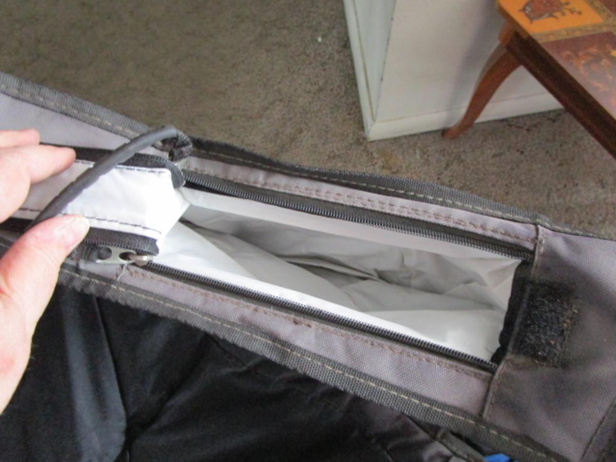 has carry bag, 2 zippered hanging ice bag, 1 cup holder, 1 hanging bag