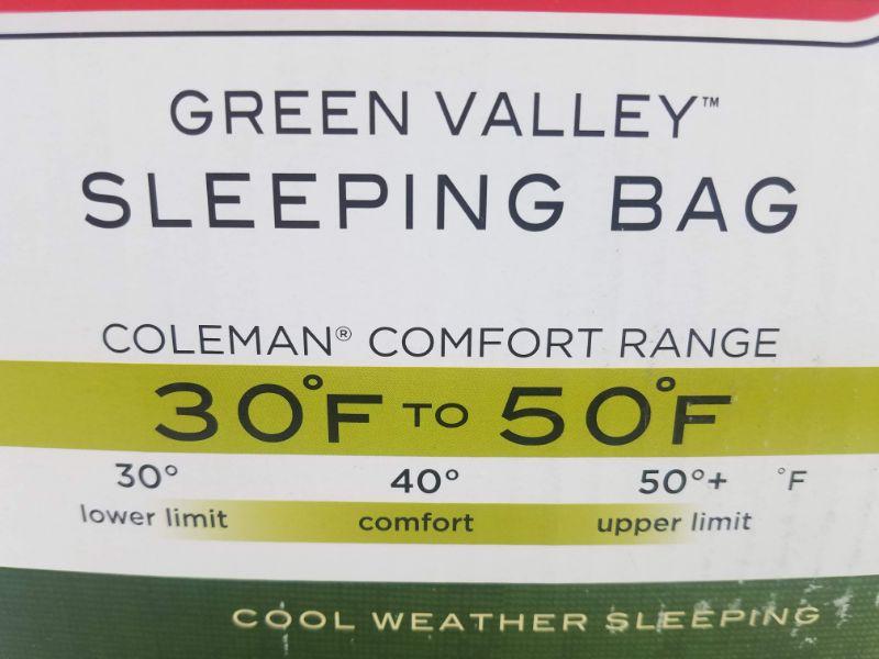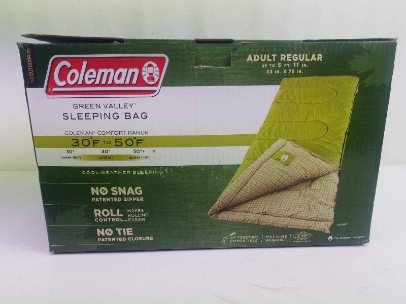 Coleman Green Valley Sleeping Bag, Adult Regular, Green - New