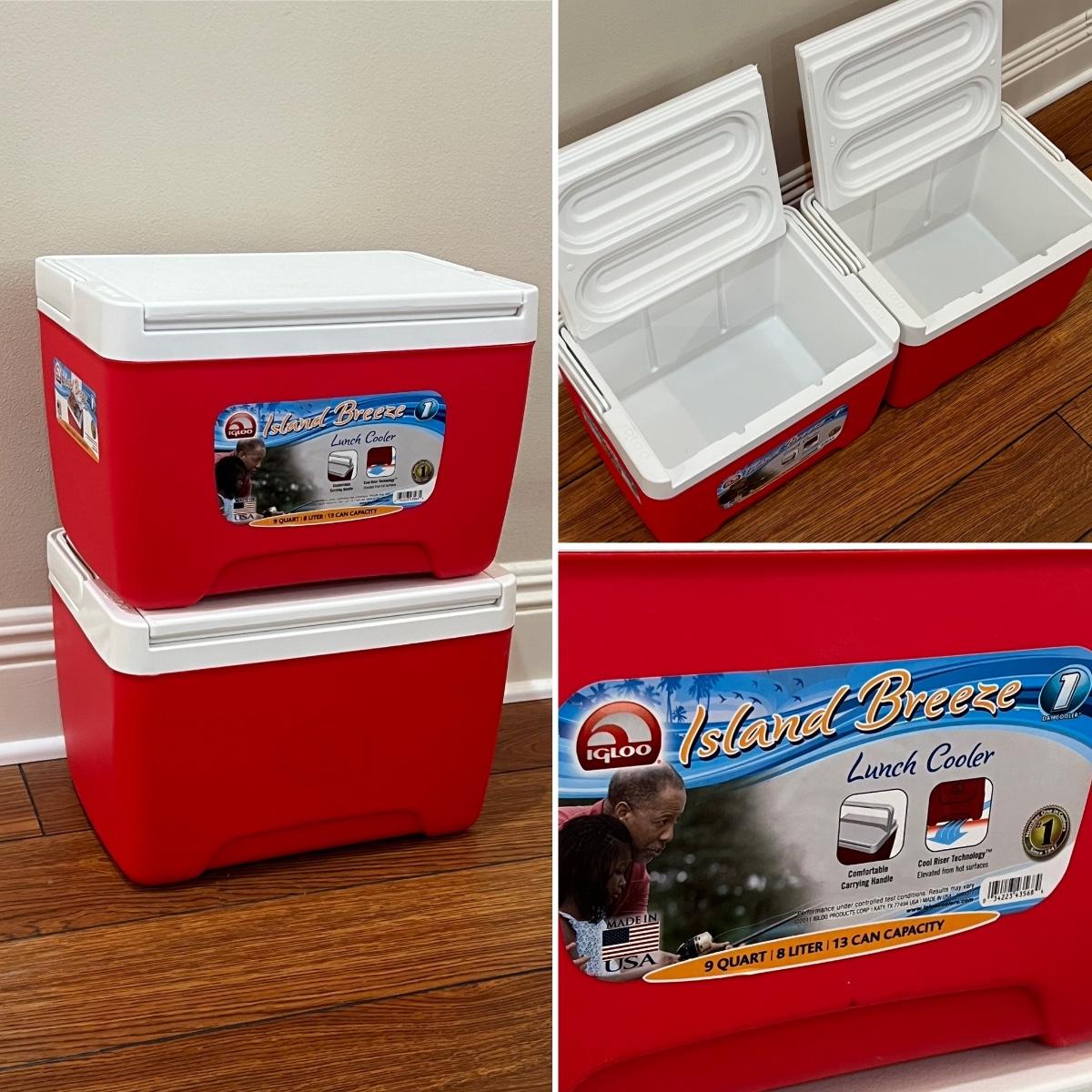 Both Igloos are 9Qt lunch coolers ~ Coleman = 13” H x 18.5” W x 11” D