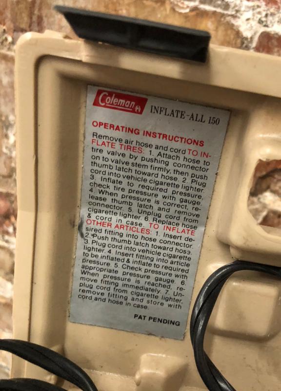Here is a used Coleman Inflate-All 150 battery air compressor...working condition...