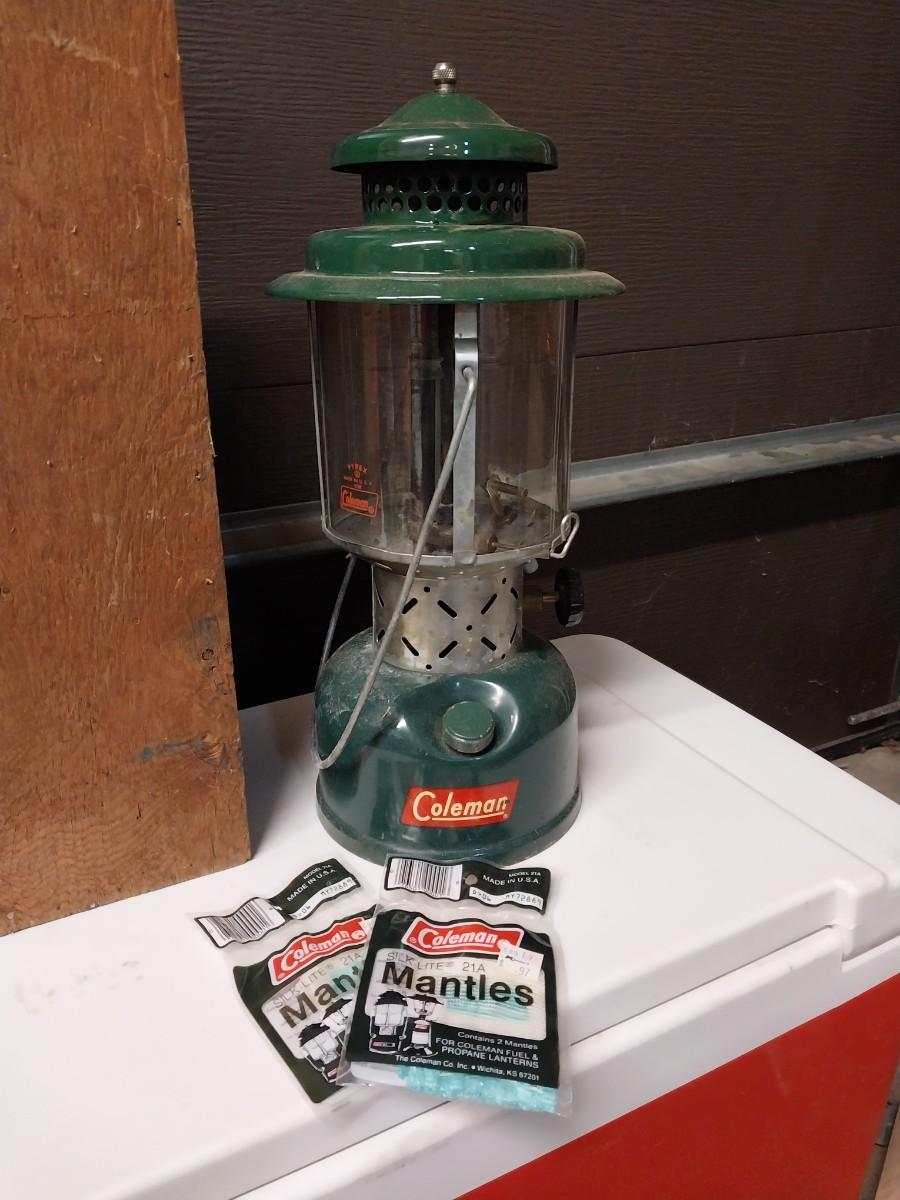 COLEMAN LANTERN WITH CARRY CASE AND EXTRA MANTLES